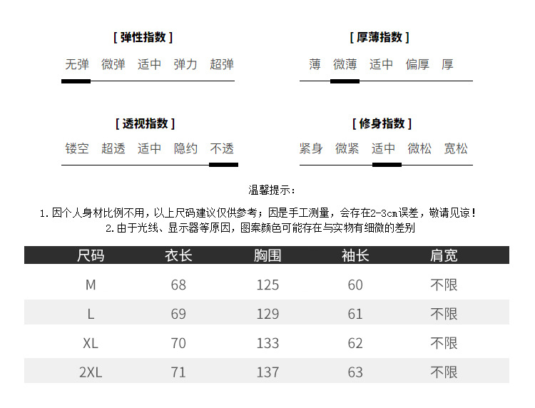 关于尺码:单位:cm,平铺手工测量,有2-4cm误差属于正常。尺码推荐仅供参考,不作为退换理由。