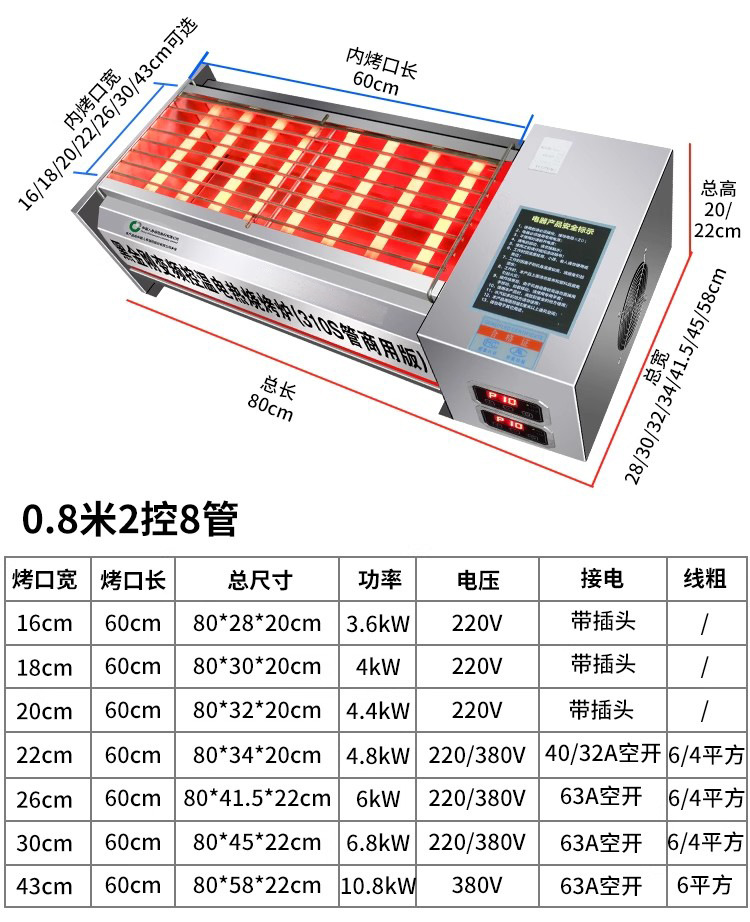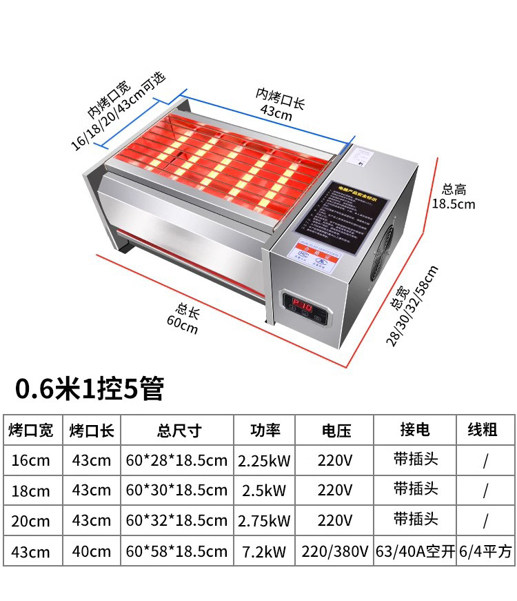 • 1.0m 제어 그릴 포트 60×26cm 상업용 6kW 220_380V 주파수 변환 온도 제어