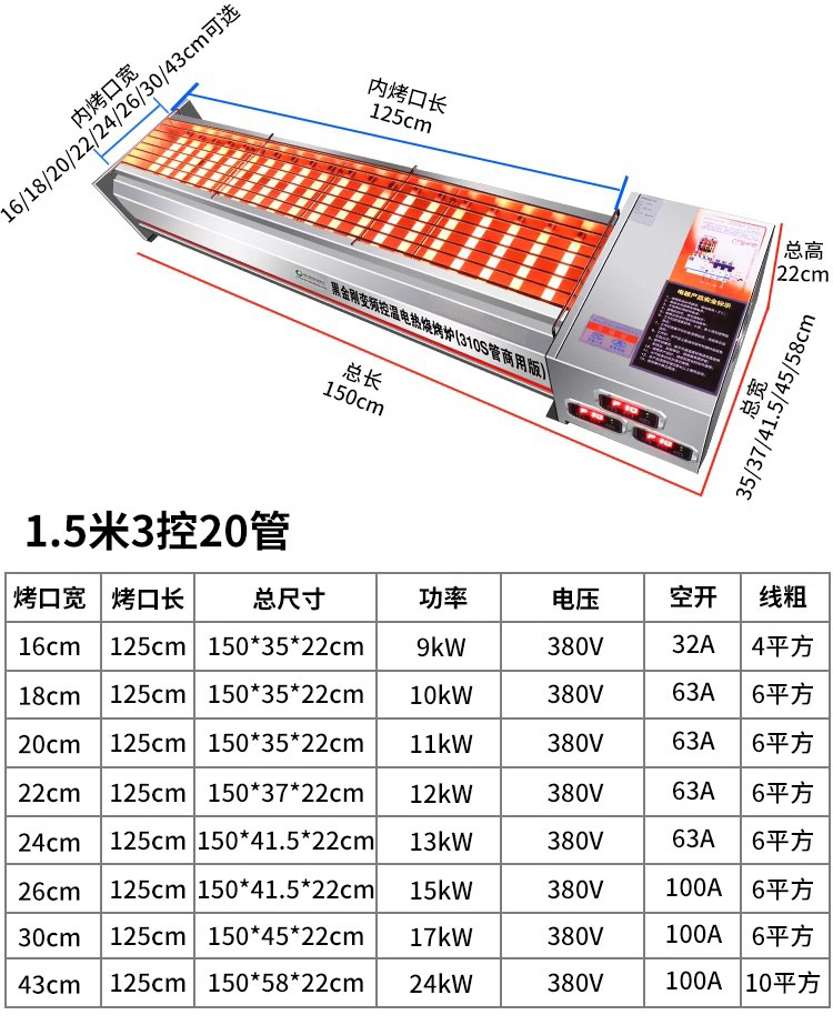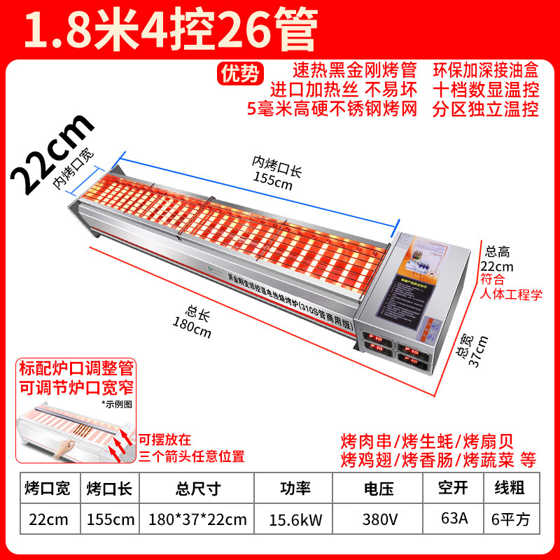• 1.8m 제어 그릴 포트 125×16cm 상업용 9kW 220_380V 주파수 변환 온도 제어