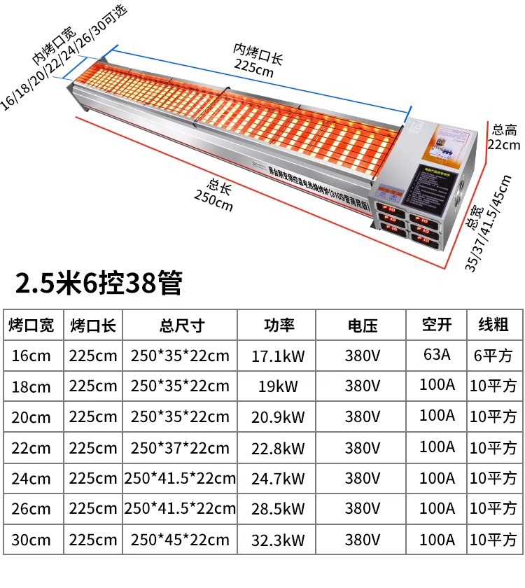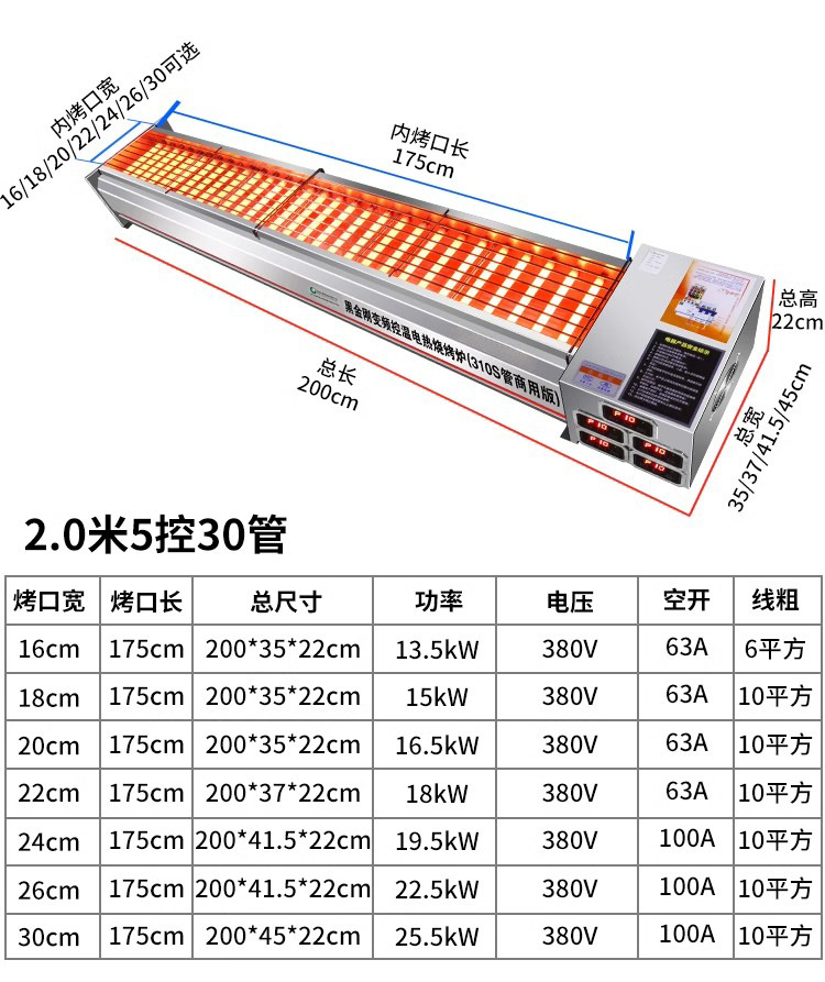 • 2.5m 제어 그릴 포트 175×16.20.22 옵션 상업용 18kW 380V 가변 주파수 온도 제어
