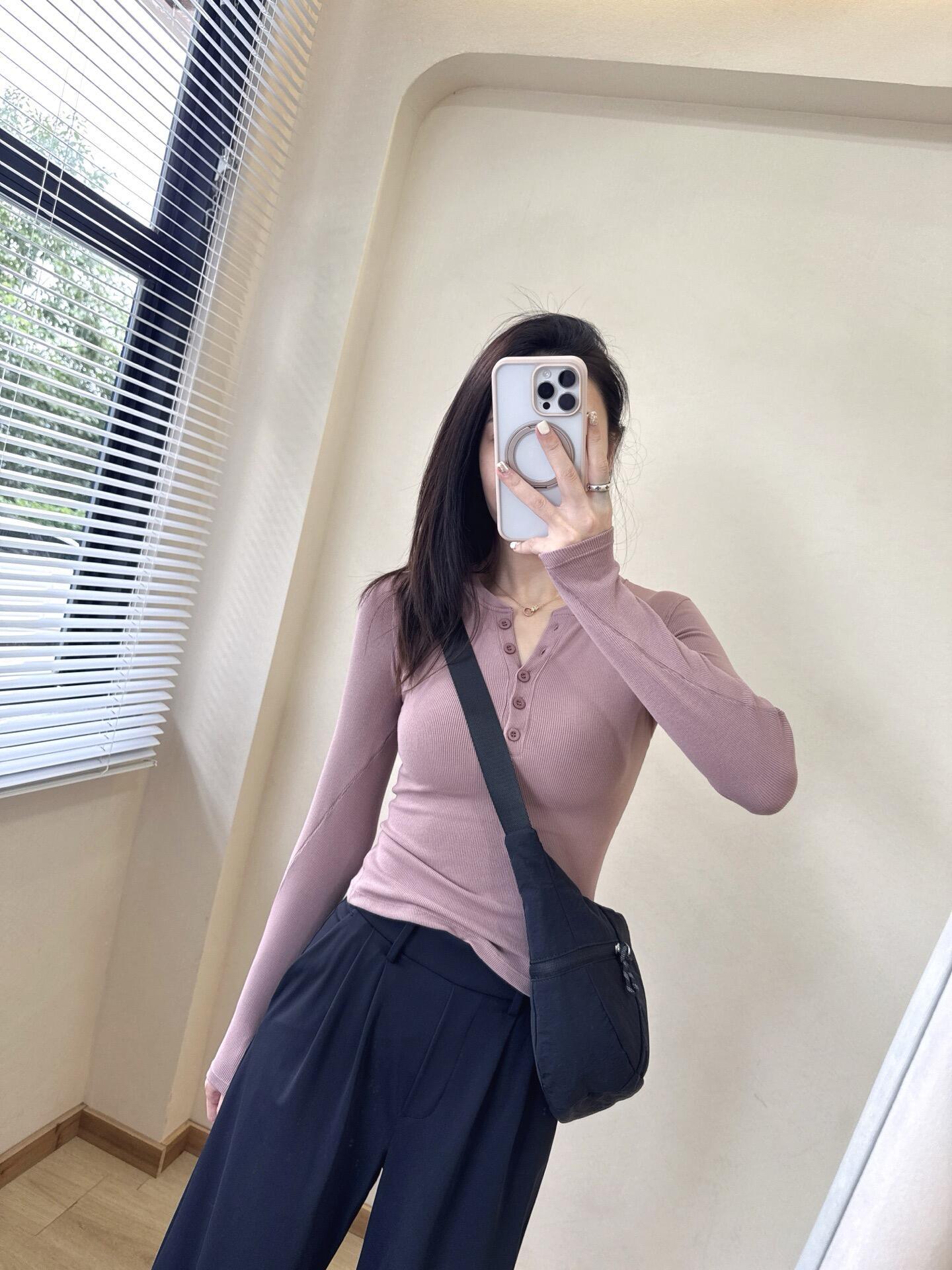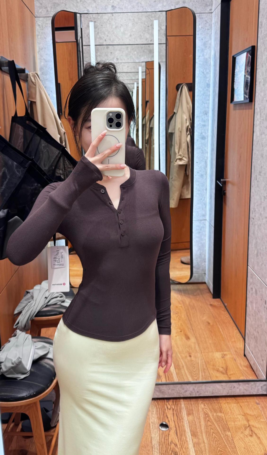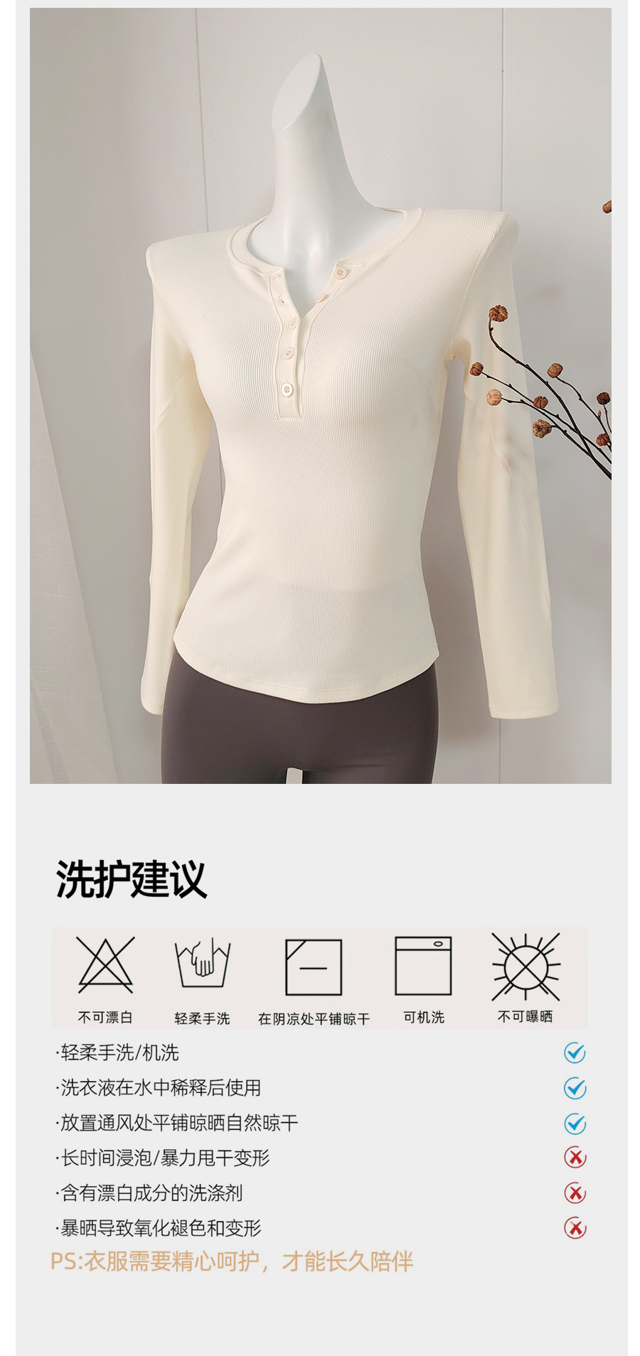 룰루 같은 스타일 버튼 헨리 셔츠 긴 소매 슬림 핏 슬리밍 요가베이스 셔츠 여성용 봄과 가을 통기성 캐주얼 티셔츠스토어 가기