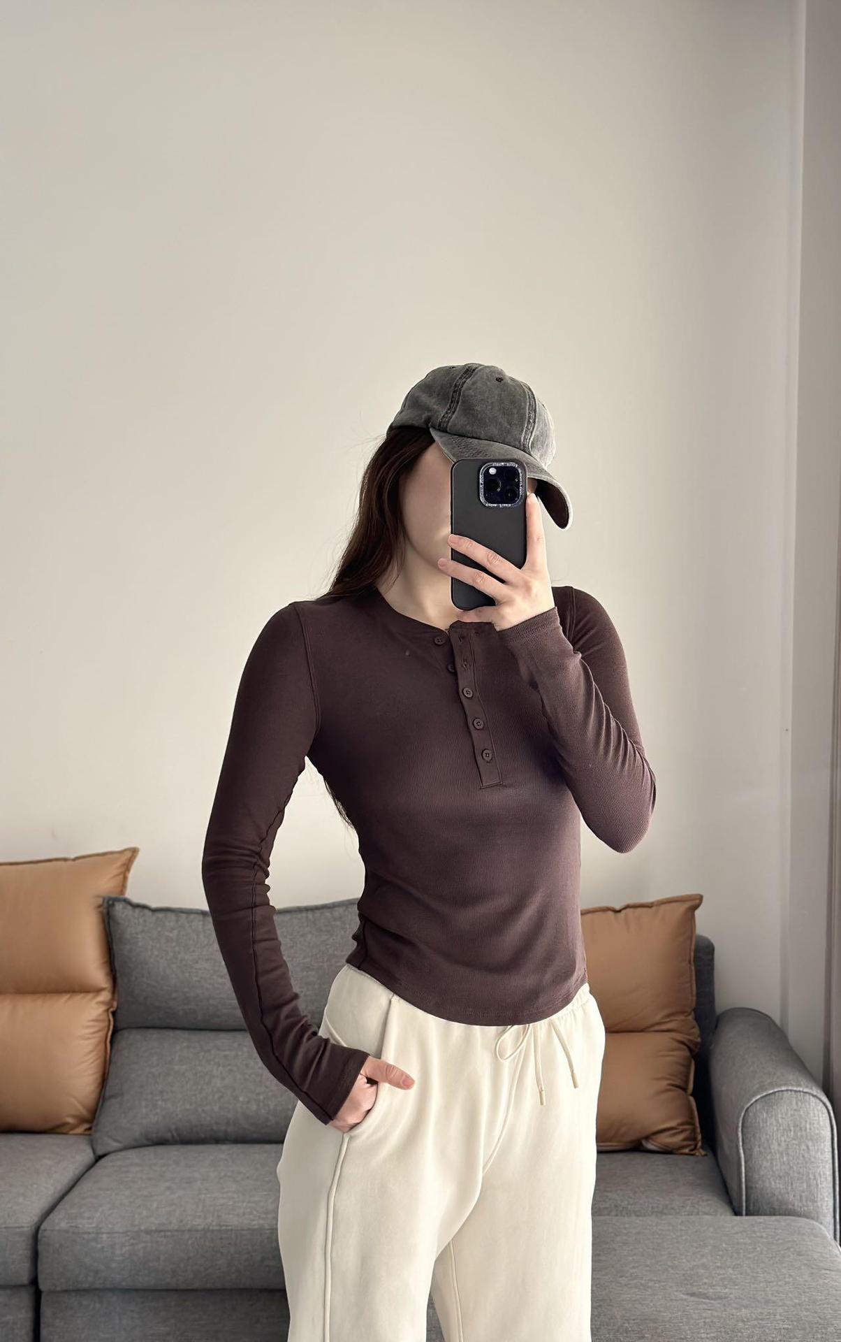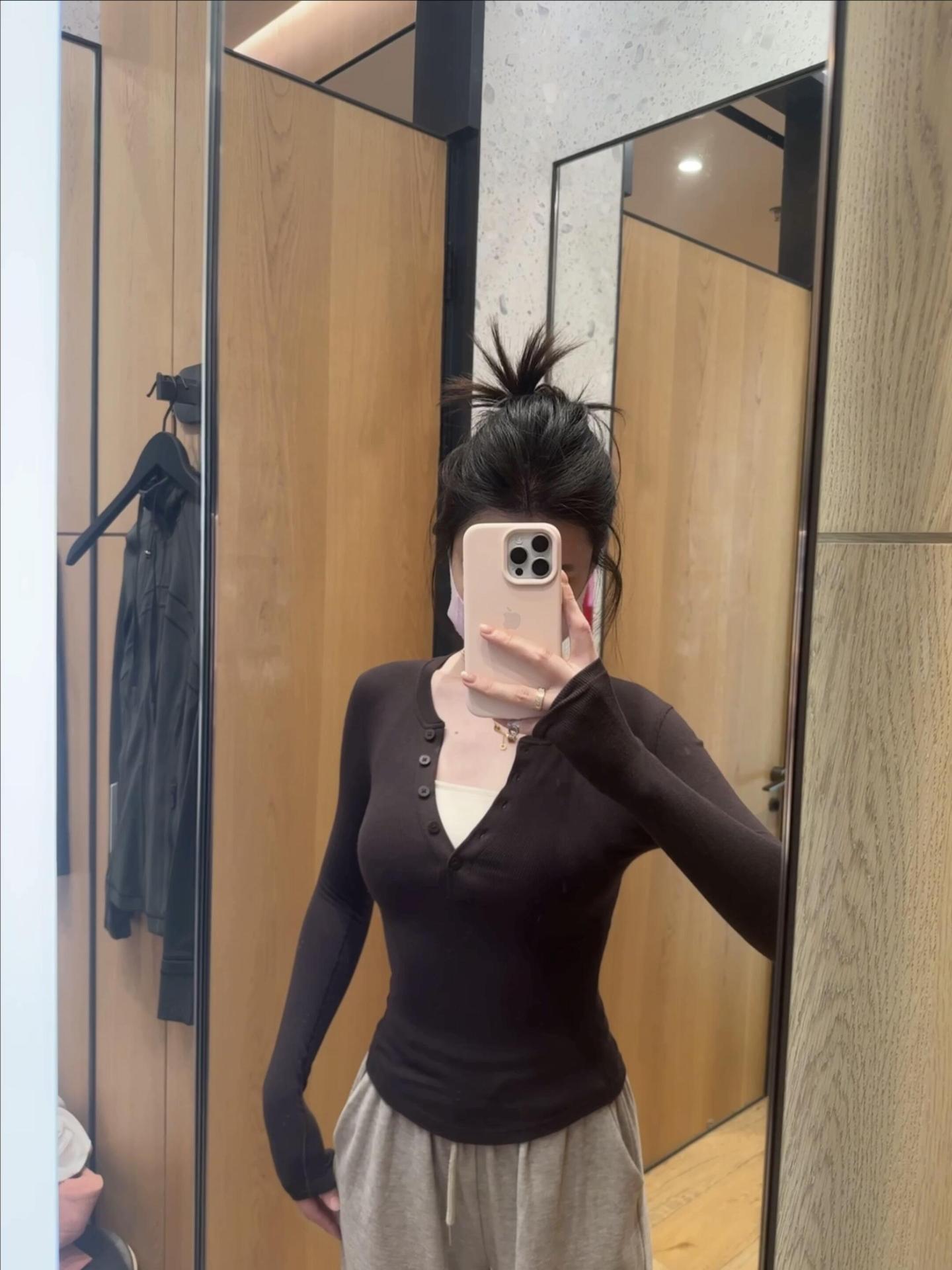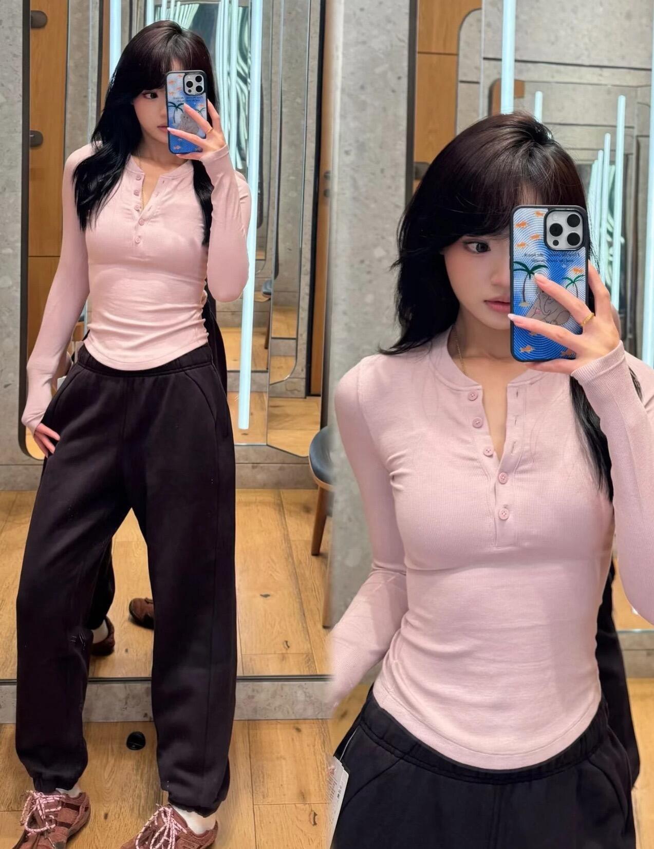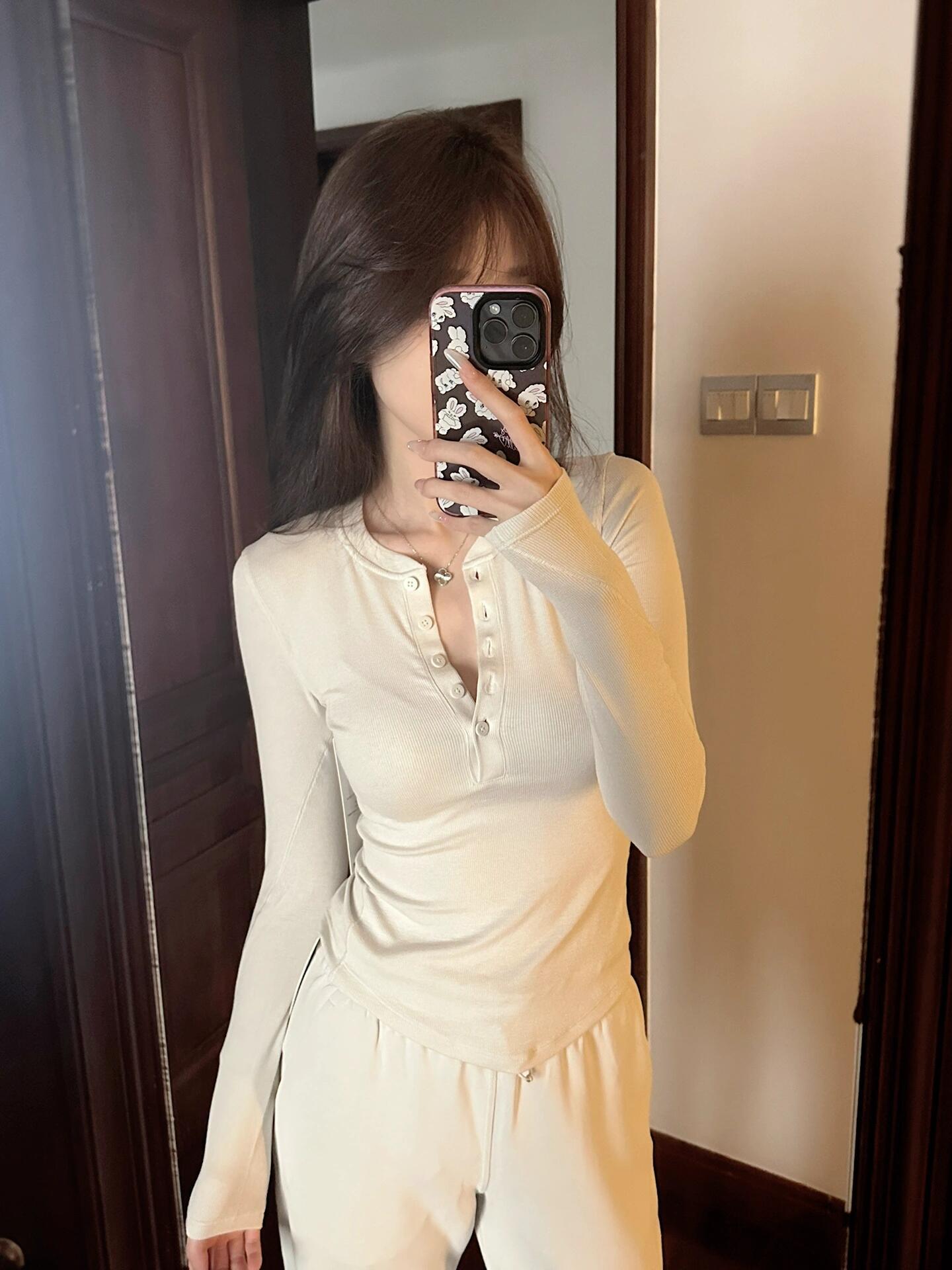 룰루 같은 스타일 버튼 헨리 셔츠 긴 소매 슬림 핏 슬리밍 요가베이스 셔츠 여성용 봄과 가을 통기성 캐주얼 티셔츠스토어 가기