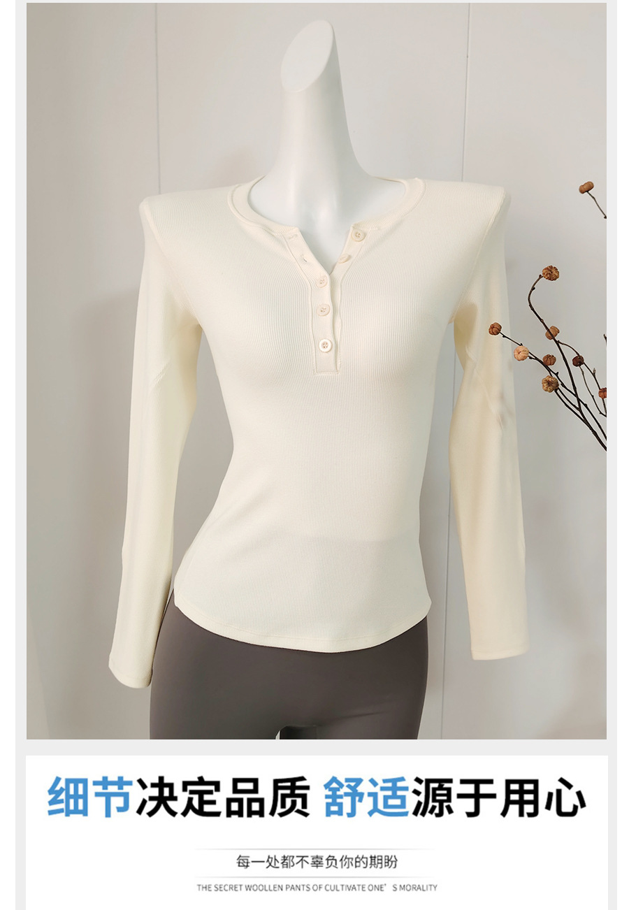 룰루 같은 스타일 버튼 헨리 셔츠 긴 소매 슬림 핏 슬리밍 요가베이스 셔츠 여성용 봄과 가을 통기성 캐주얼 티셔츠