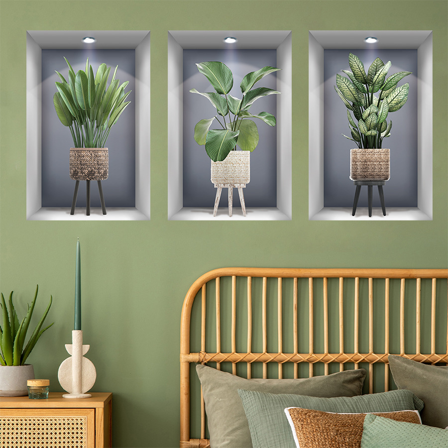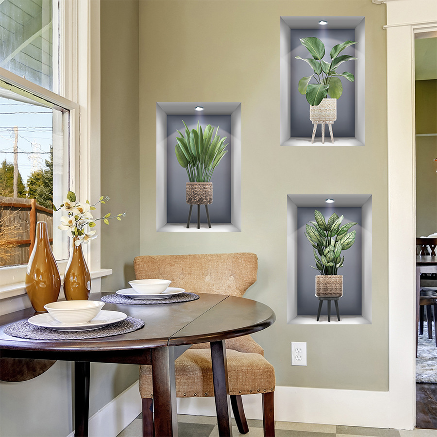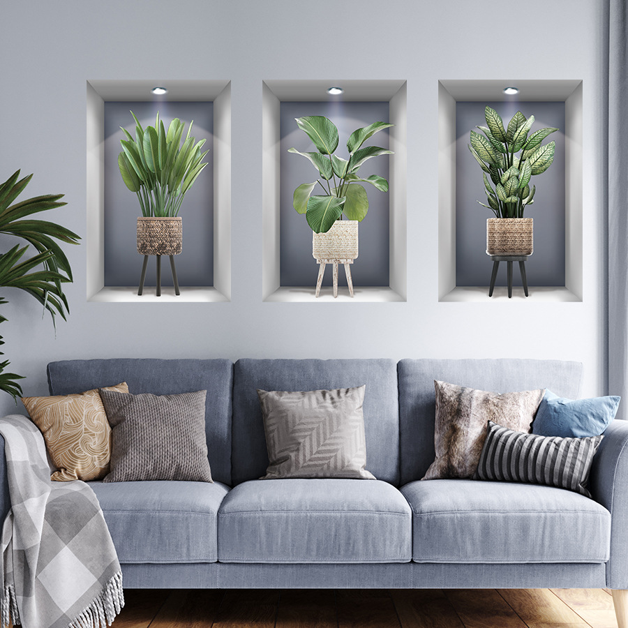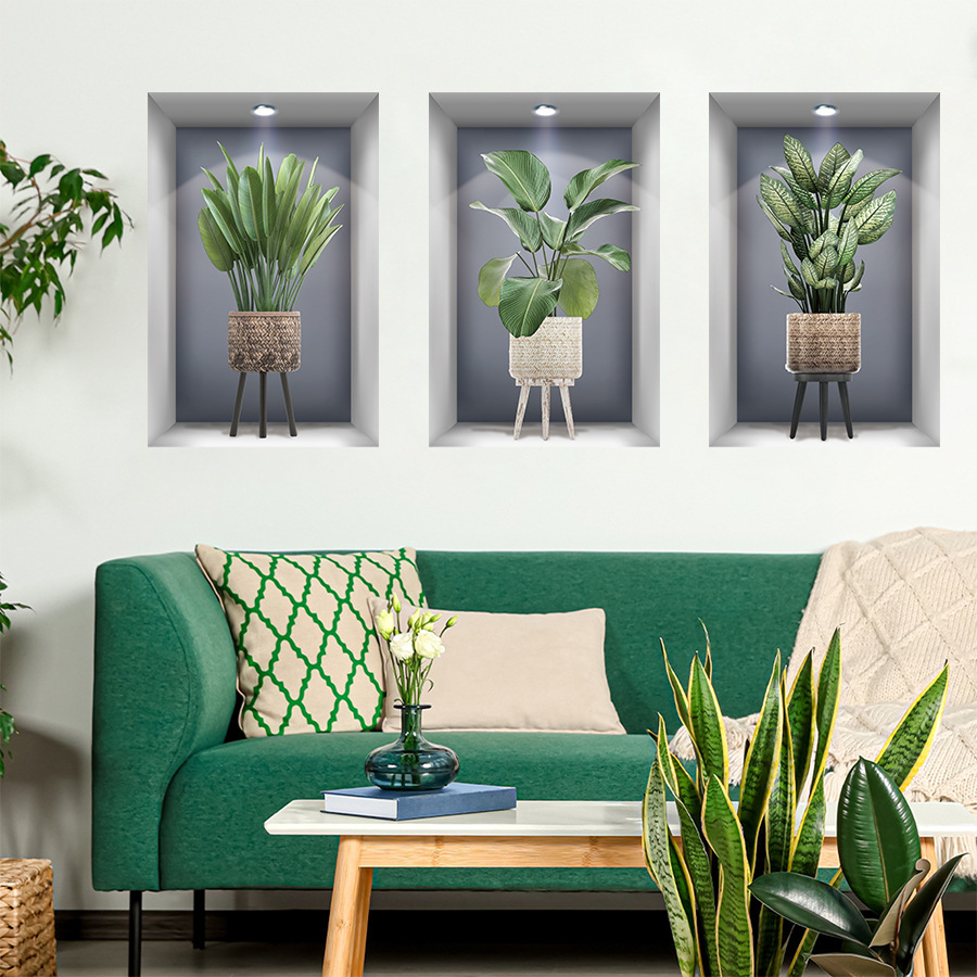 BR3719Q 시뮬레이션 녹색 식물 화분 크리 에이 티브 클립 아트 자체 접착 벽 스티커 거실 연구 사무실 장식 스티커스토어 가기