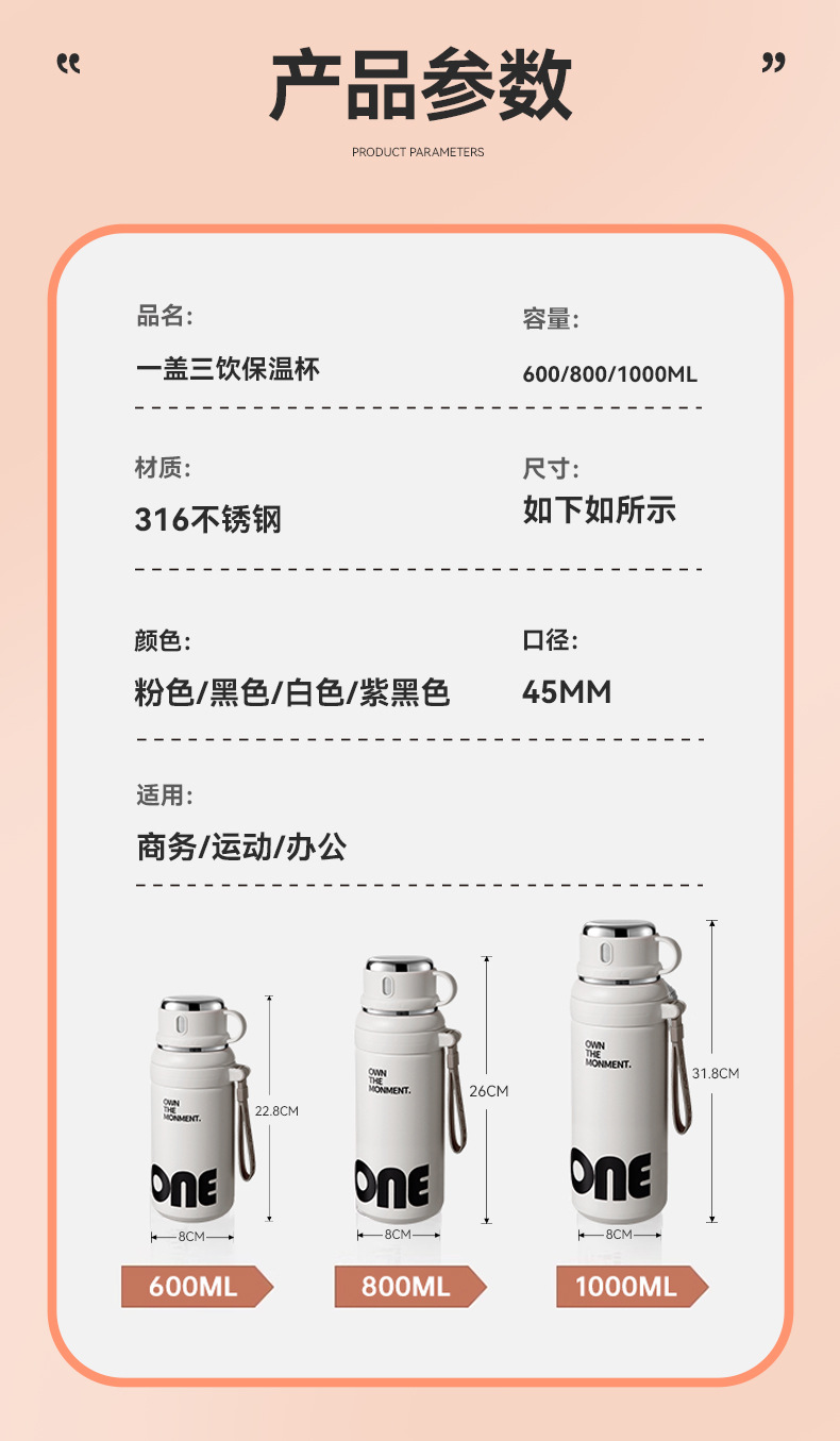 새로운 스타일 원 커버 3 사용 보온병 컵 가정용 대용량 316 스테인레스 스틸 더블 드루킹 컵 야외 휴대용 핸드 헬드 컵
