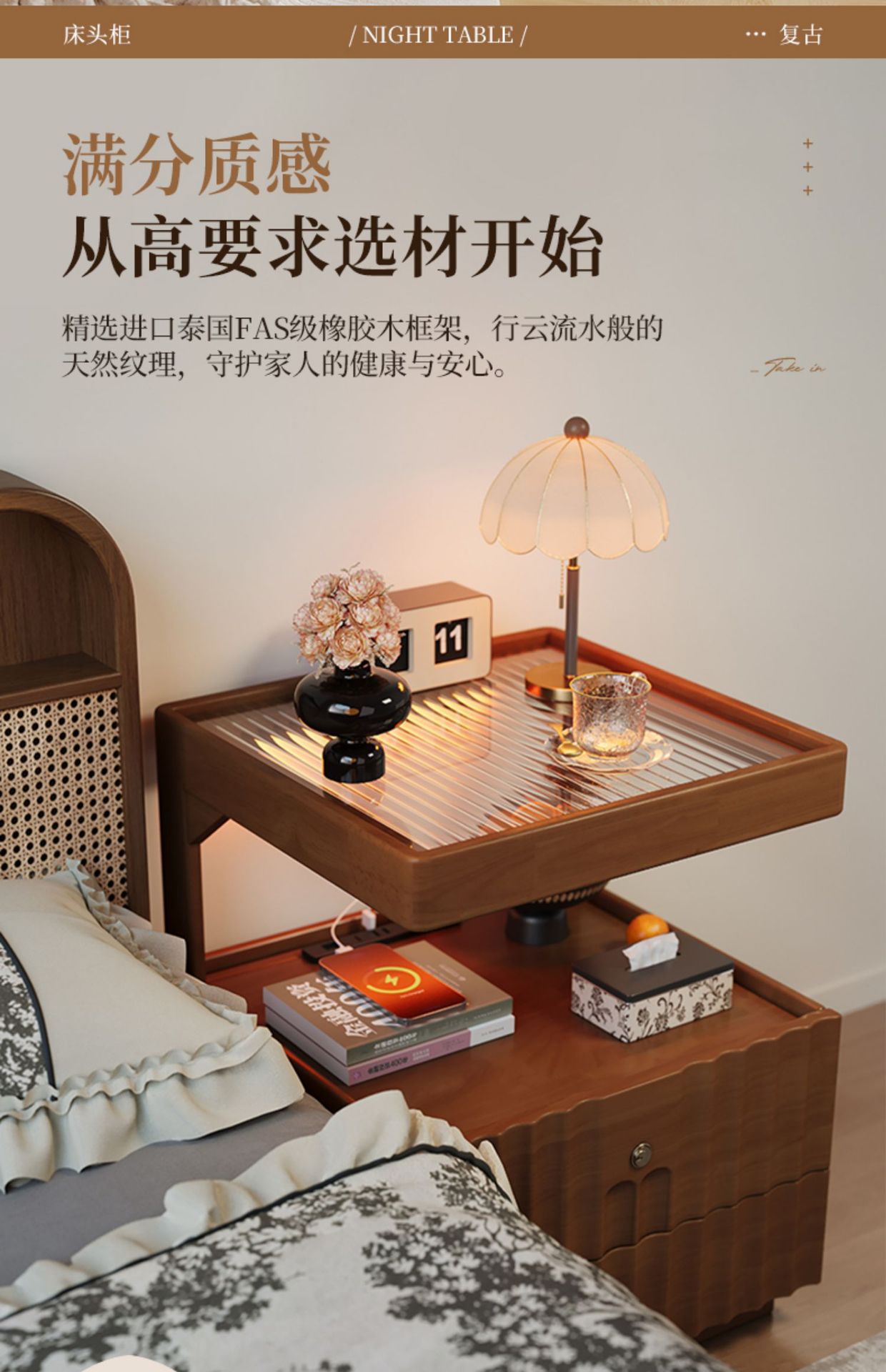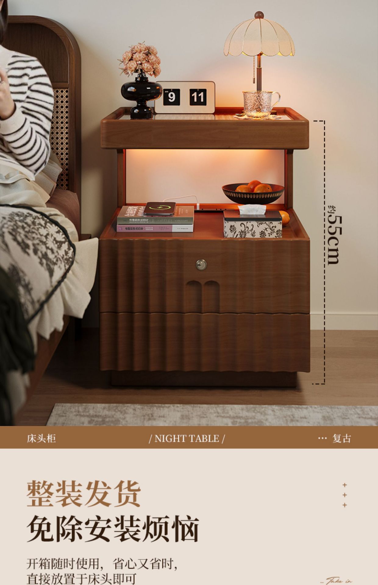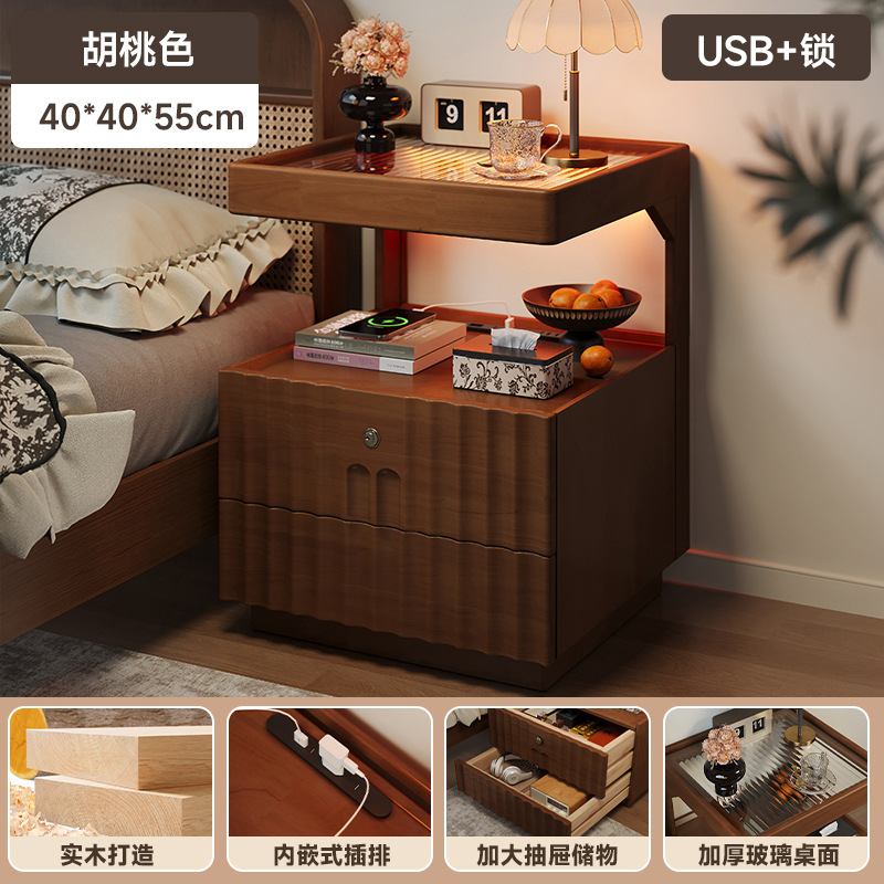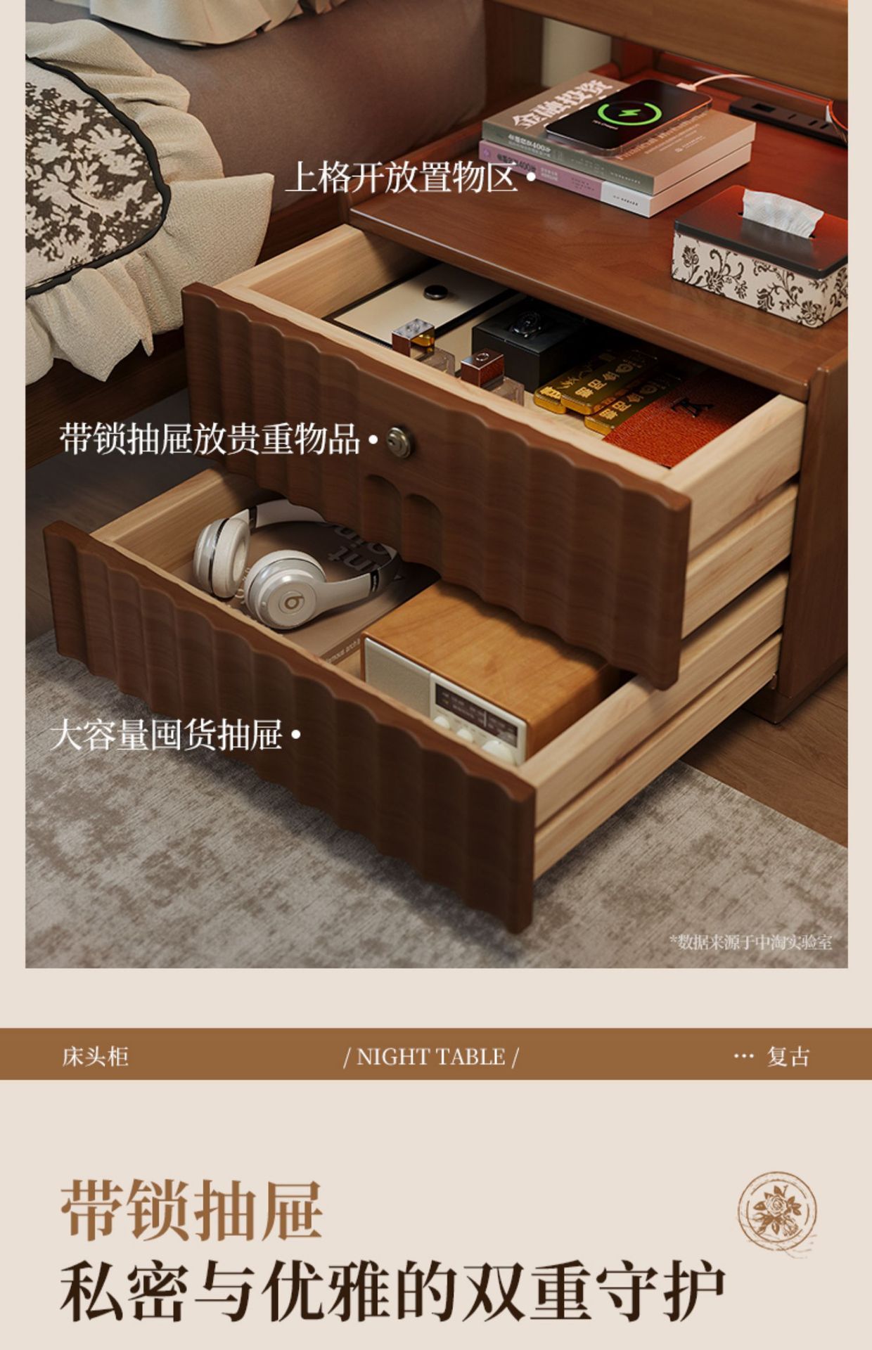 实木床头柜简约现代家用卧室带锁储物柜小型床边置物架简易收纳柜