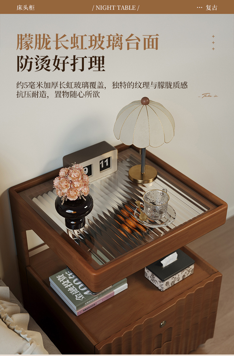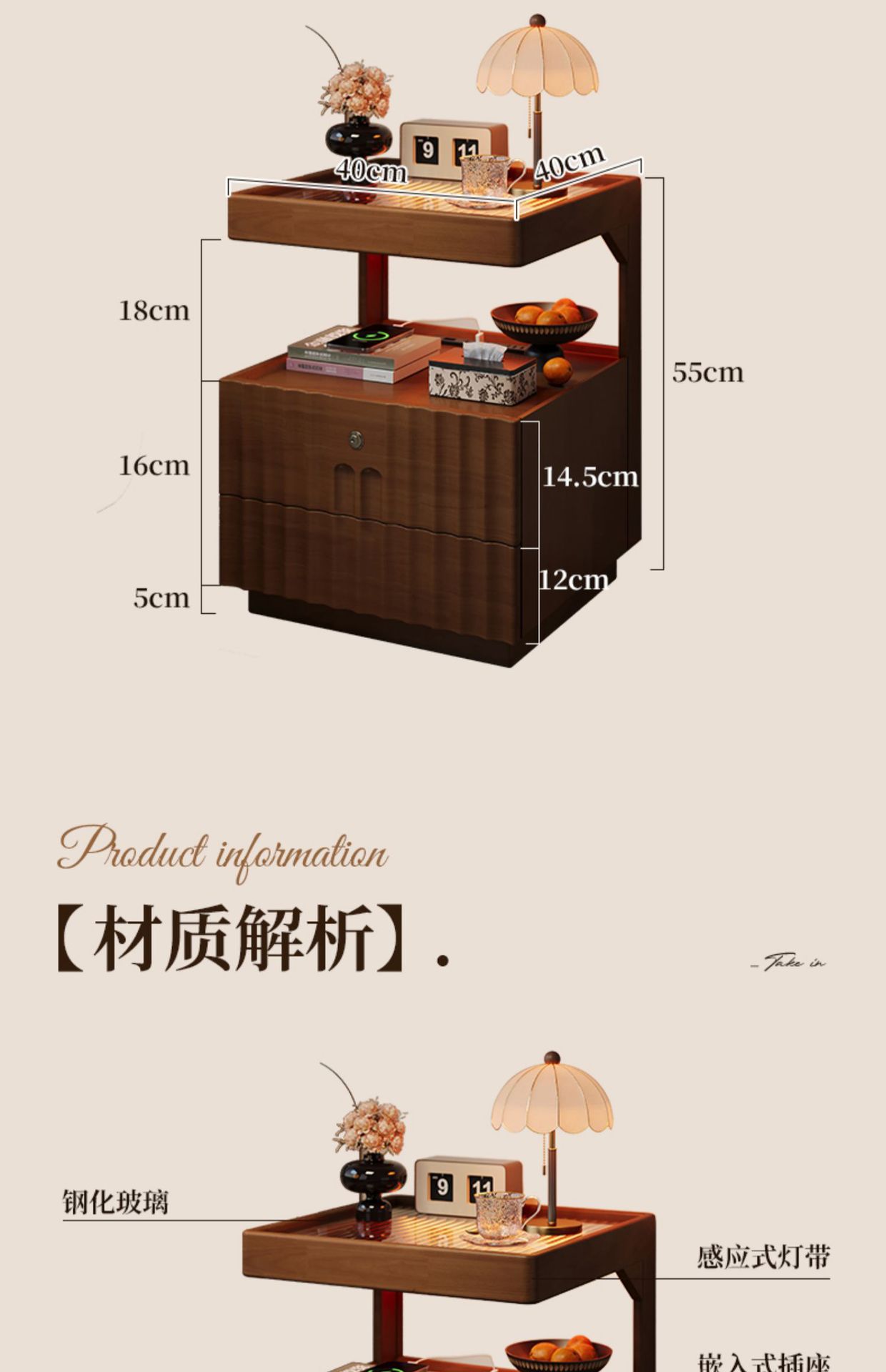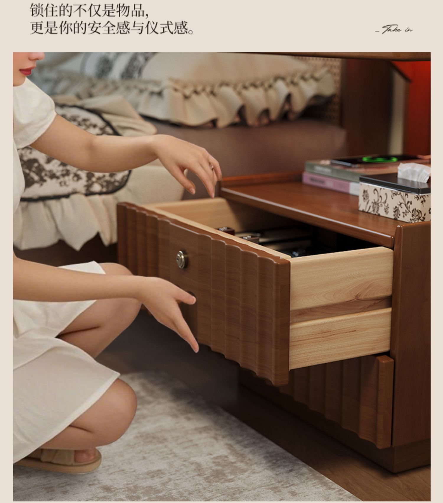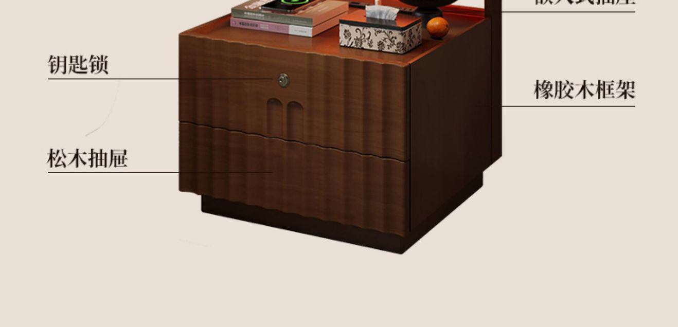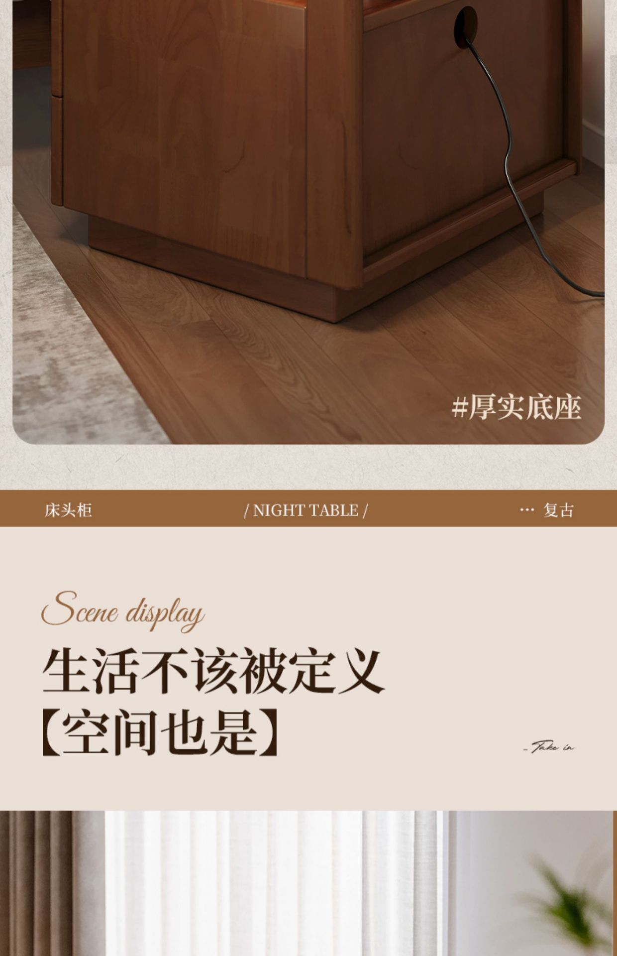实木床头柜简约现代家用卧室带锁储物柜小型床边置物架简易收纳柜