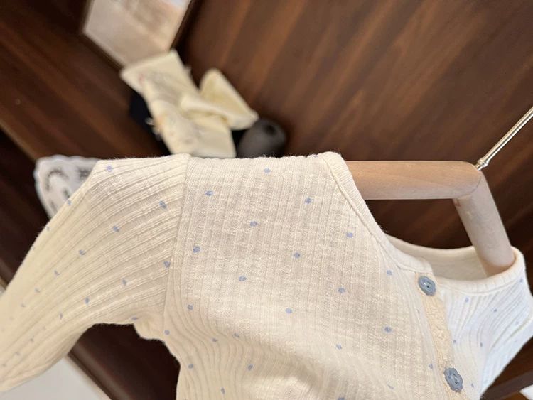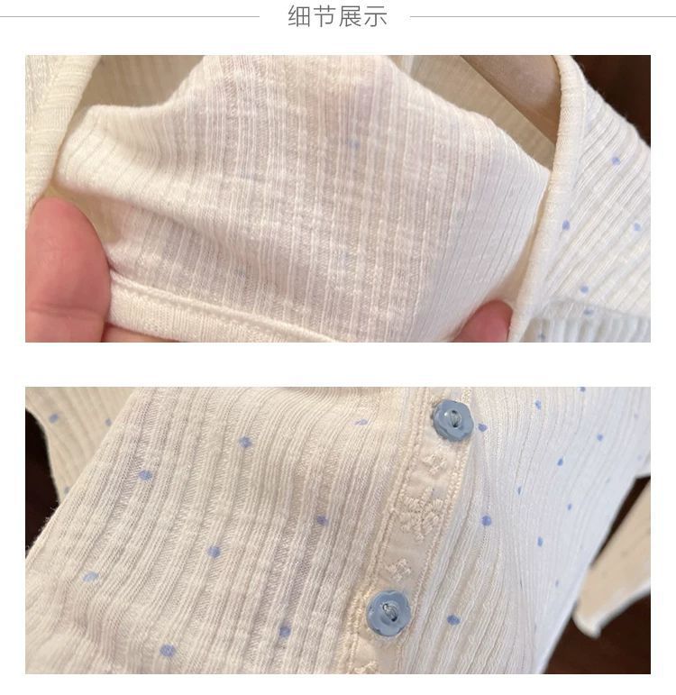 2025 봄과 여름 새로운 아기 소녀의 작은 웨이브 도트 에어컨 카디건 소녀의 아기 소녀의 어린이 니트 선 스크린 재킷스토어 가기