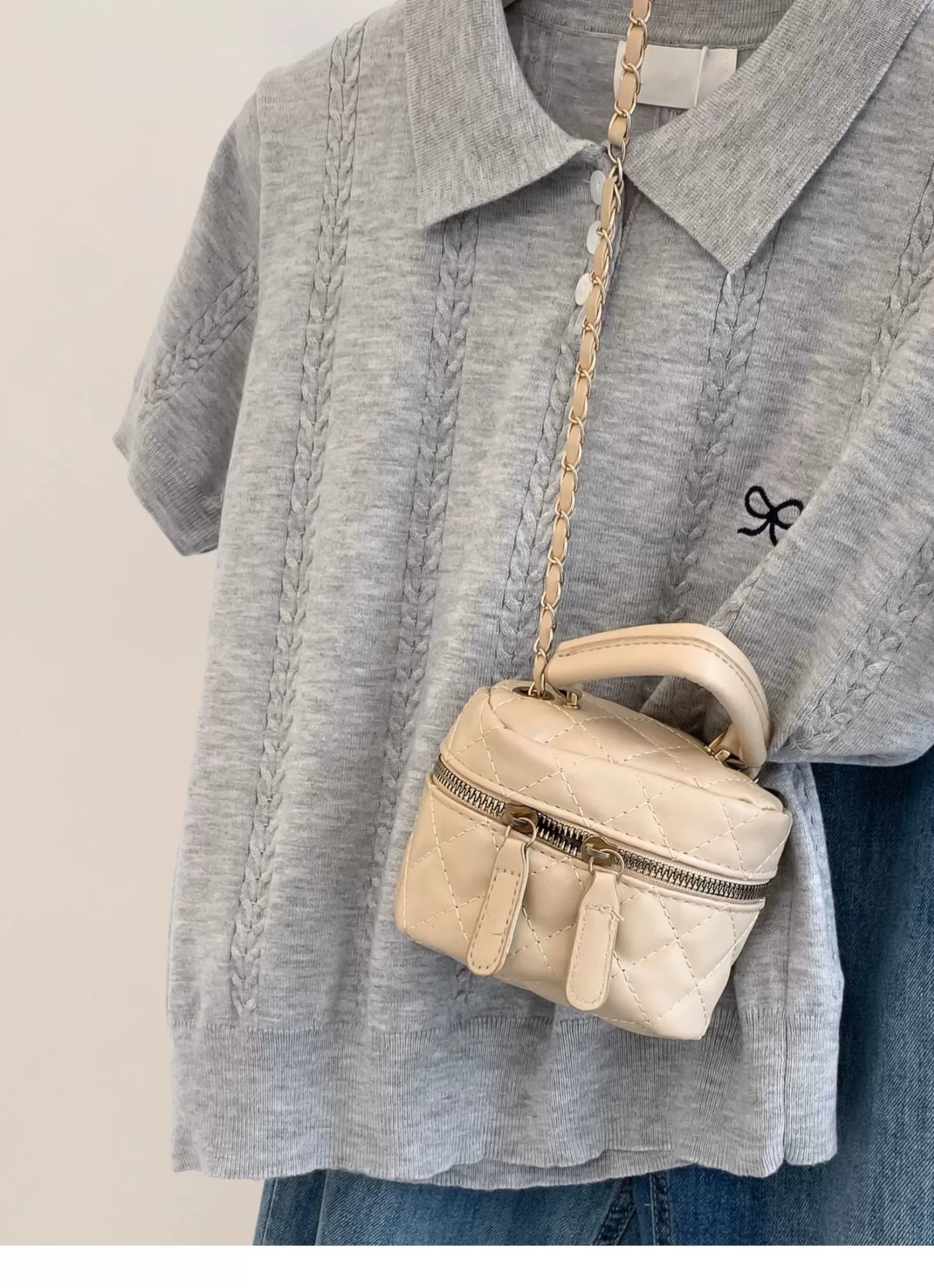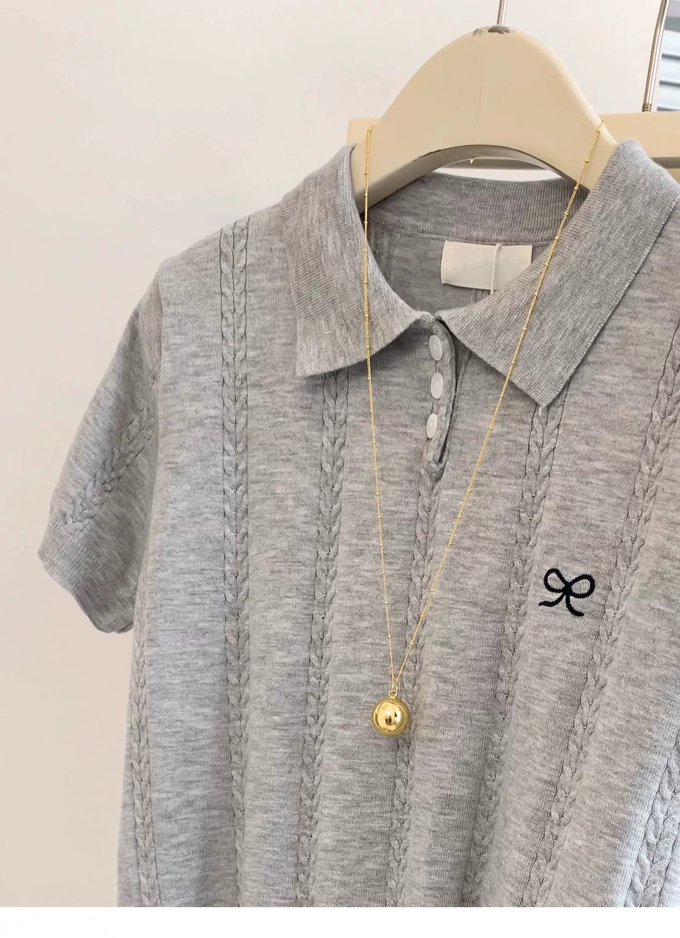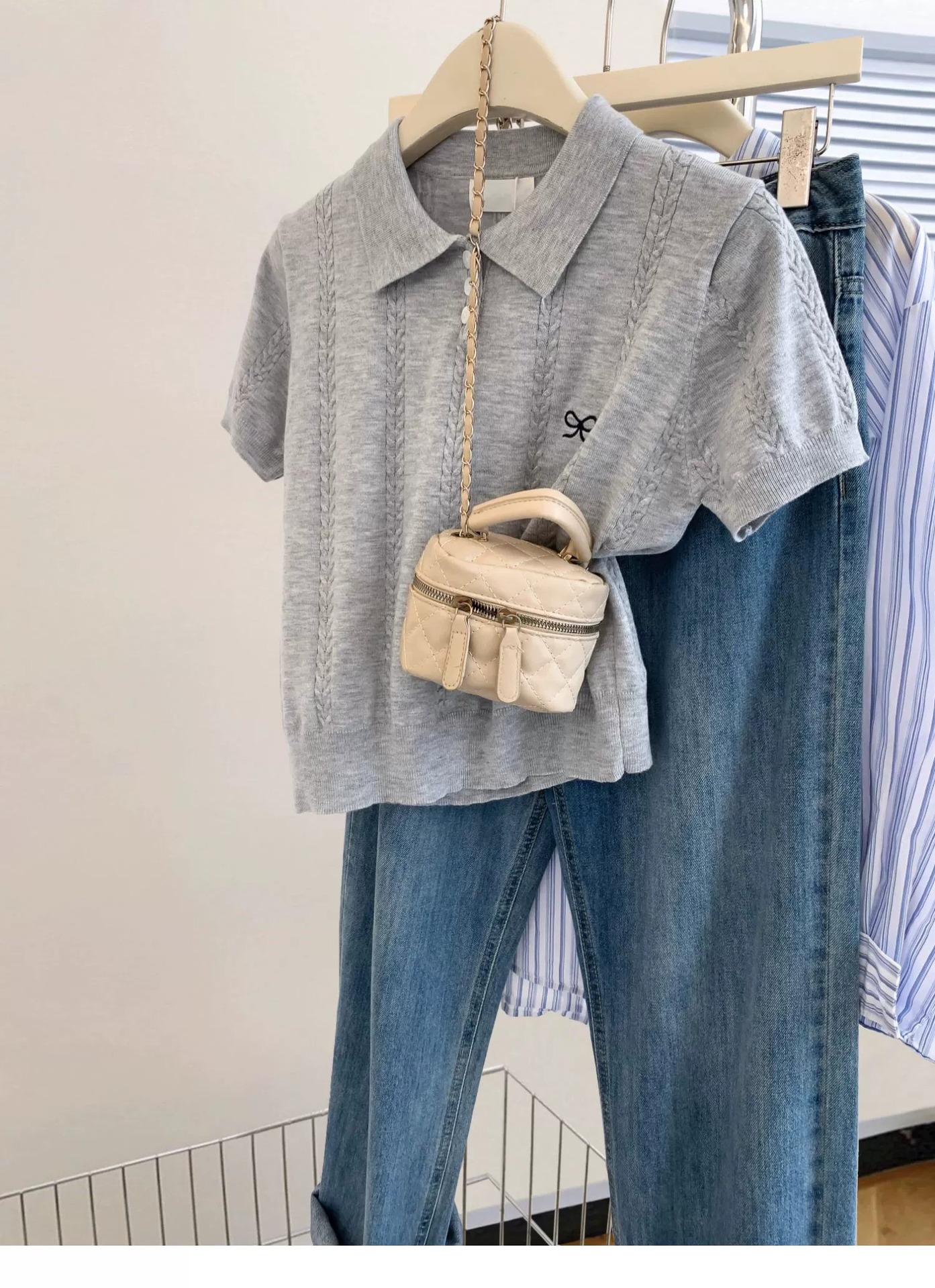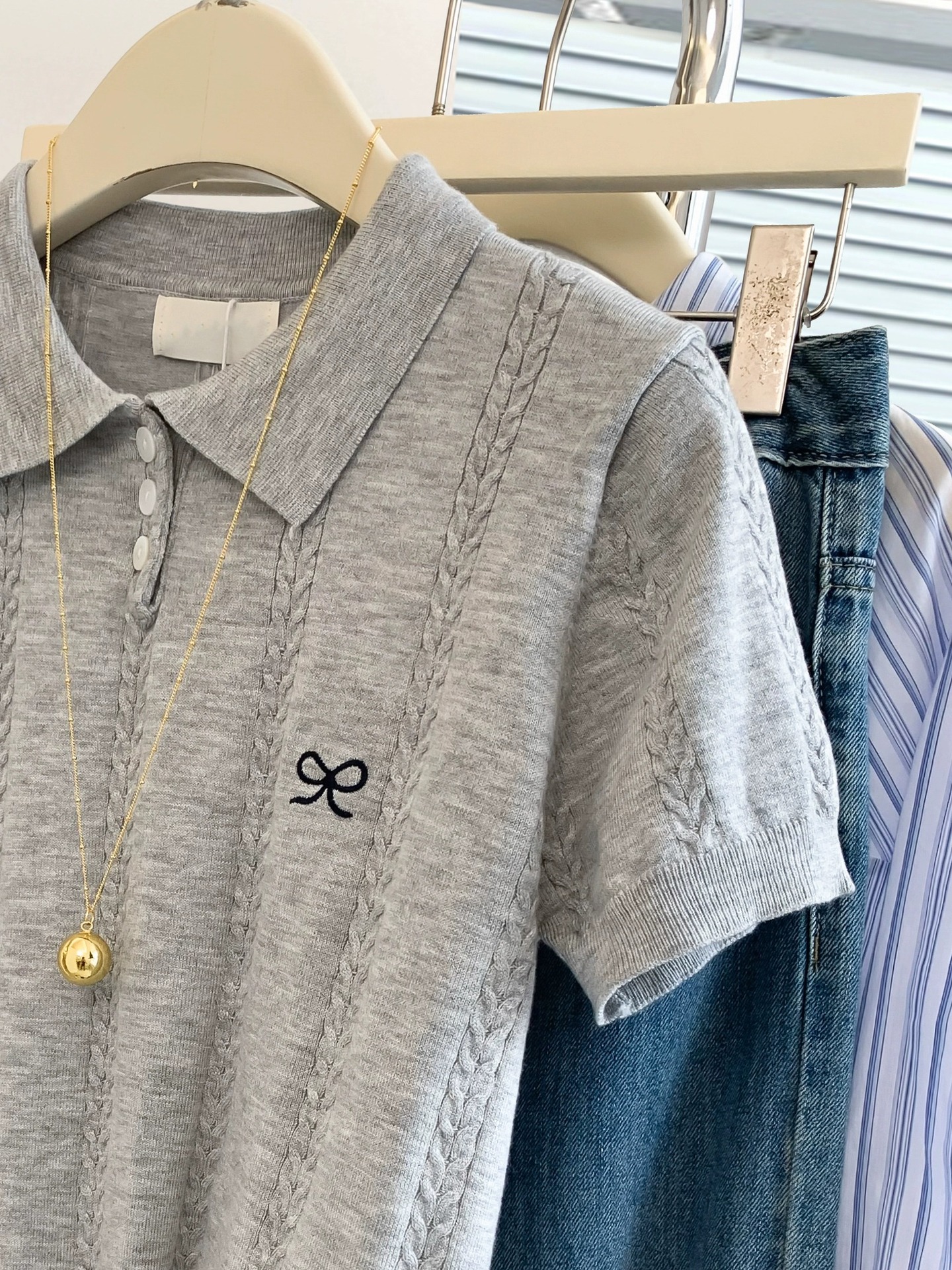 회색 어깨 폴로 목 활 니트 반팔 티셔츠 여성용 2025 여름 슬림 룩 우아한 엘 아이스 실크 탑스토어 가기
