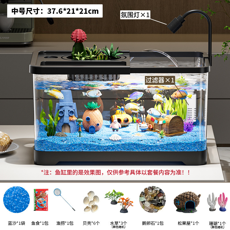 탁상용 어항 가정용 거실 수족관 풍경 필터 산소 생산 통합 생태 탱크 뚜껑 높은 침투성 금붕어 탱크스토어 가기