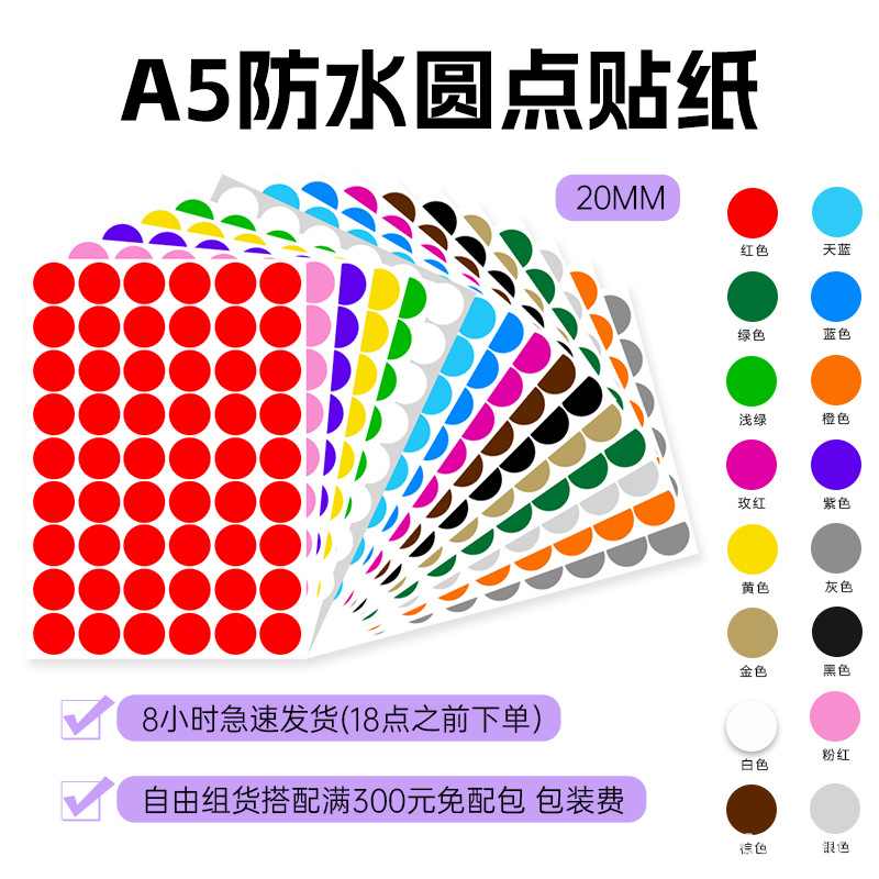 A5 컬러 도트 20mm 라벨 PVC 방수 필기 빈 색상 창고 분류 라운드 비닐 스티커스토어 가기