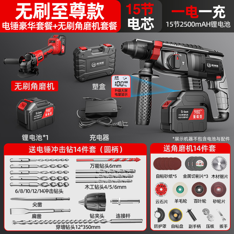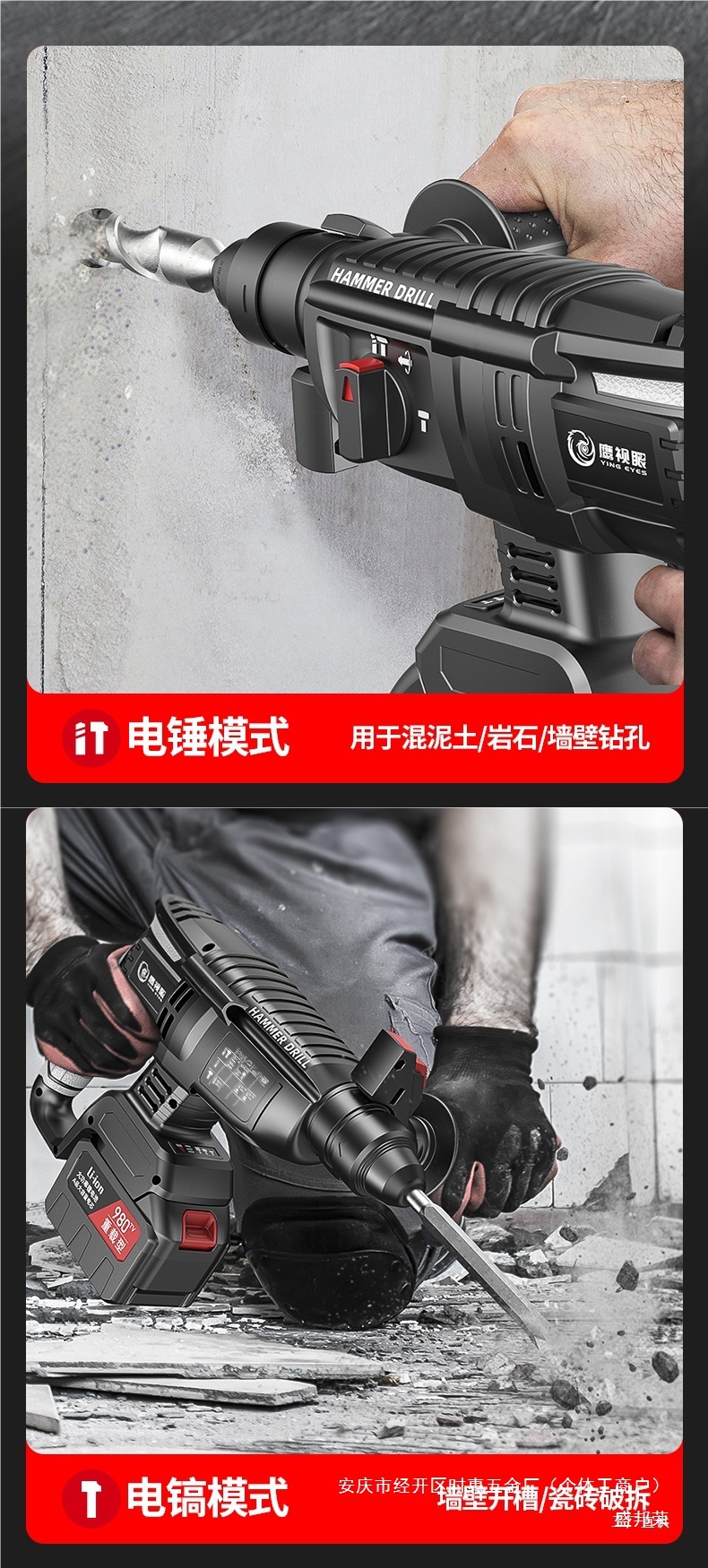 브러시리스 리튬 해머 콘크리트 다기능 리튬 타악기 드릴 전기 드릴 무거운 무선 충전 전기 픽 3 Li Xiao