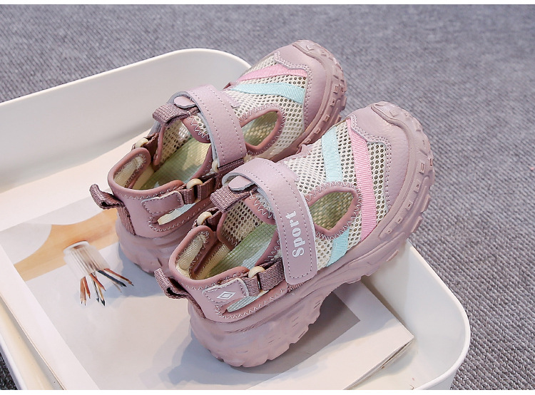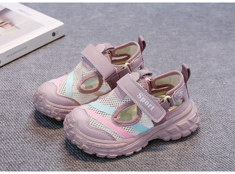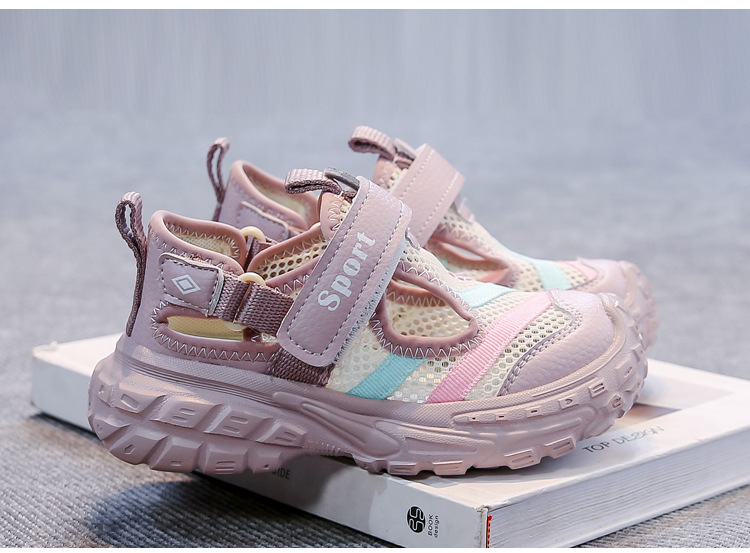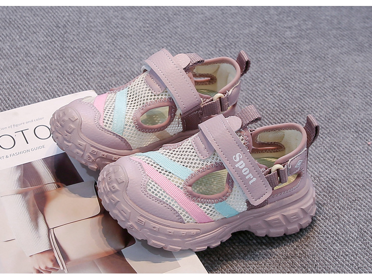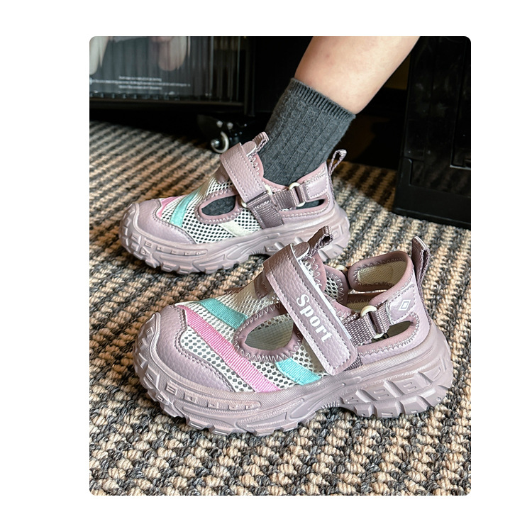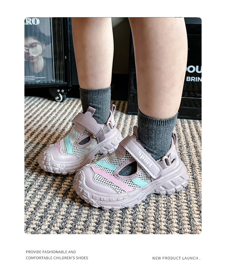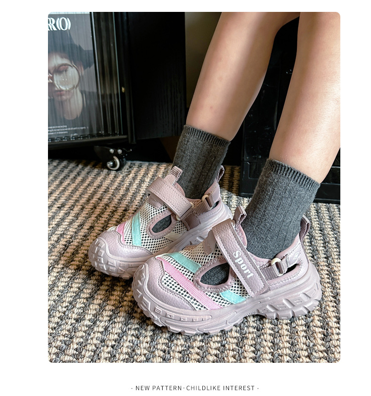 여자 샌들 2025 여름 새로운 어린이 유행 올 매치 싱글 메쉬 통기성 캐주얼 신발 유행 할로우 샌들스토어 가기