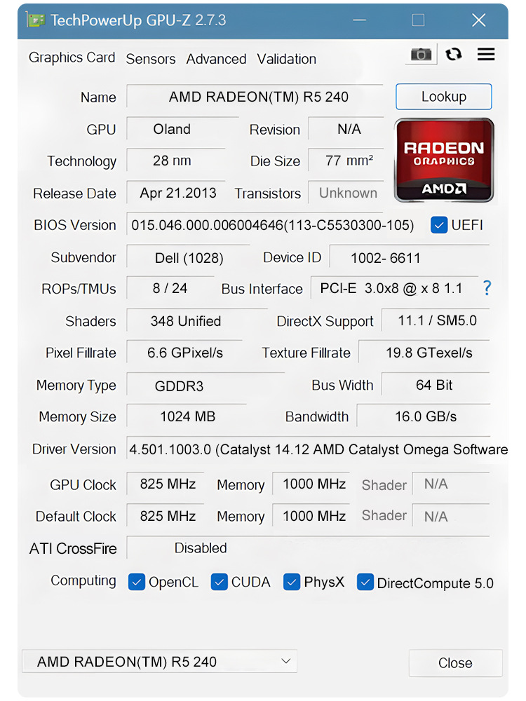 AMDR5-240 1G 데스크탑 컴퓨터 그래픽 카드 DVI 인터페이스