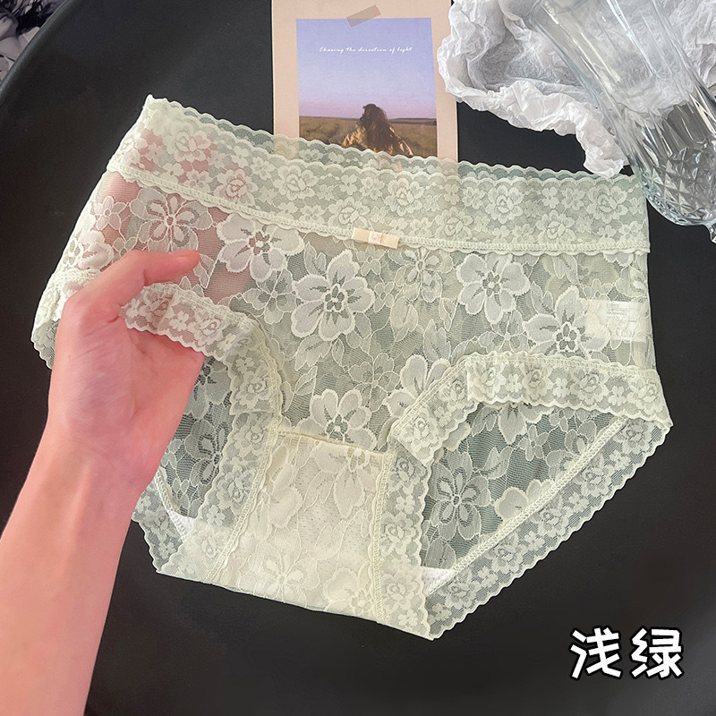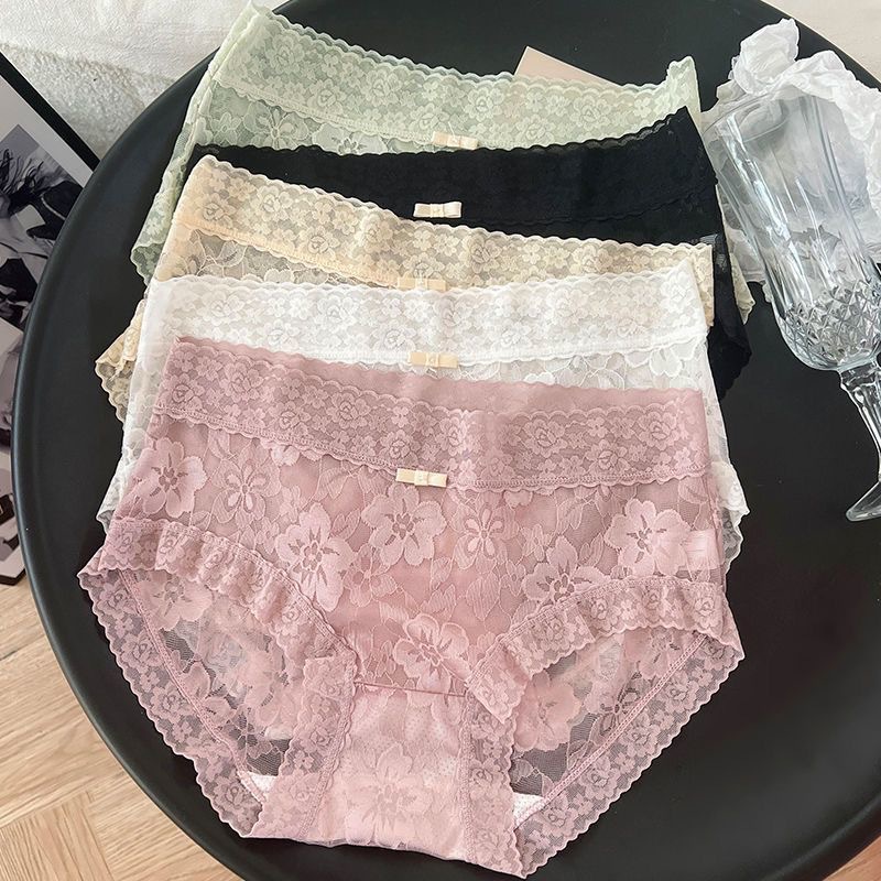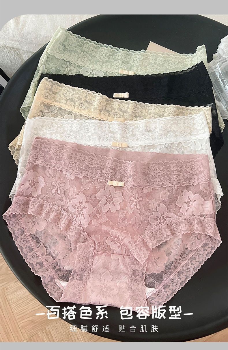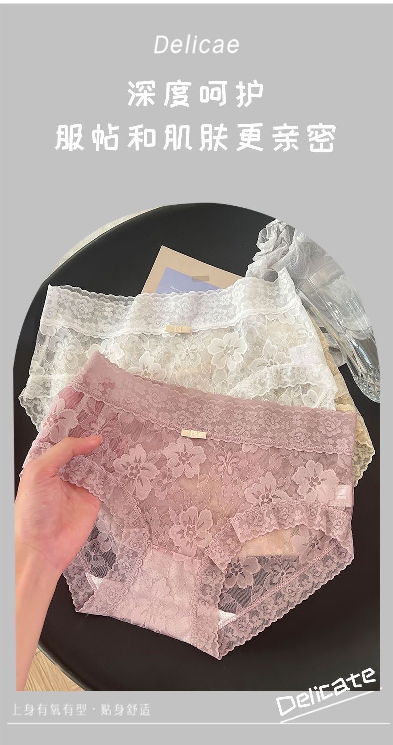 여성을 위한 새로운 프랑스 섹시한 레이스 속옷, 무봉제 항균 면 가랑이 중간 허리, 피부 친화적인 통기성 여성용 투명 팬티