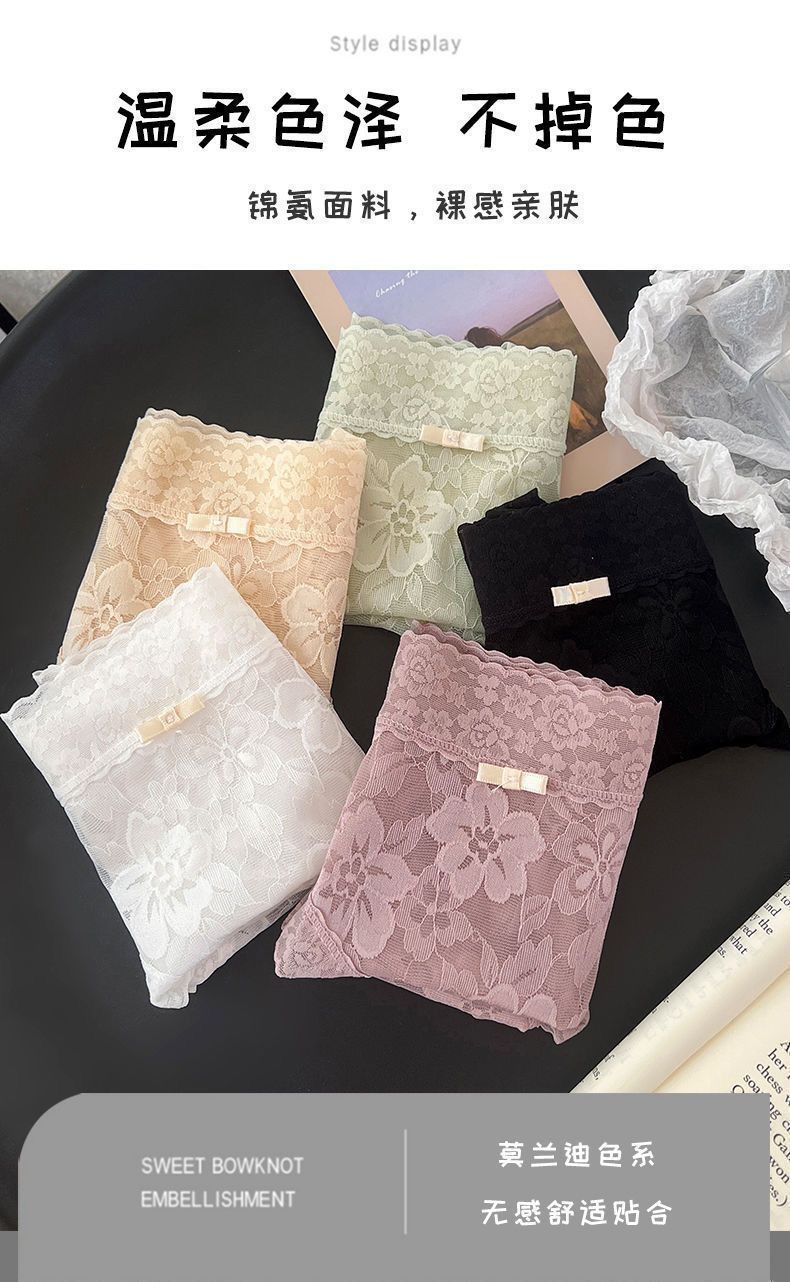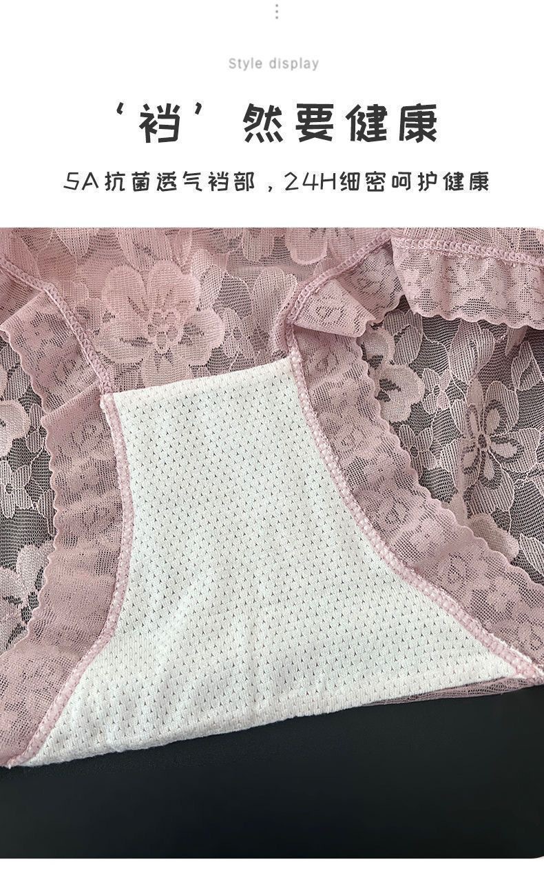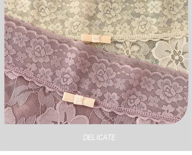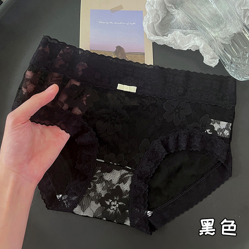 여성을 위한 새로운 프랑스 섹시한 레이스 속옷, 무봉제 항균 면 가랑이 중간 허리, 피부 친화적인 통기성 여성용 투명 팬티