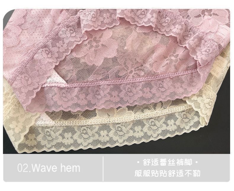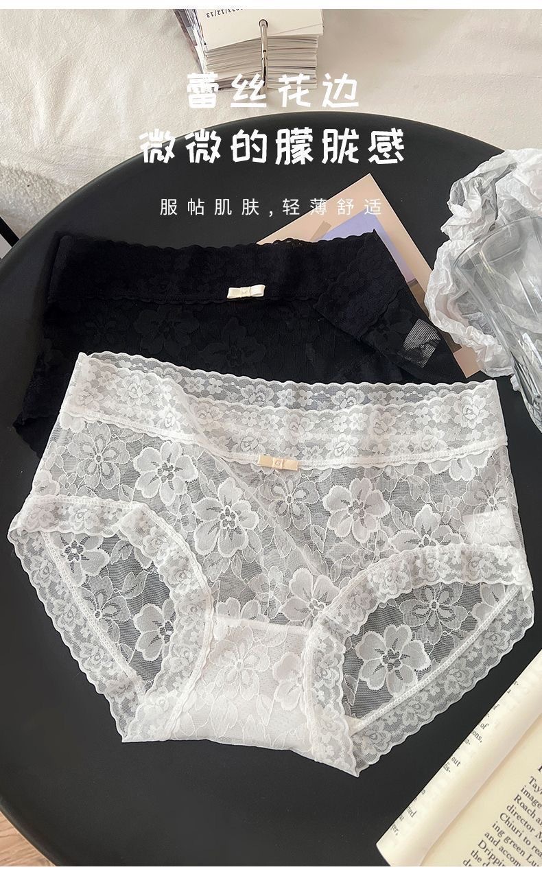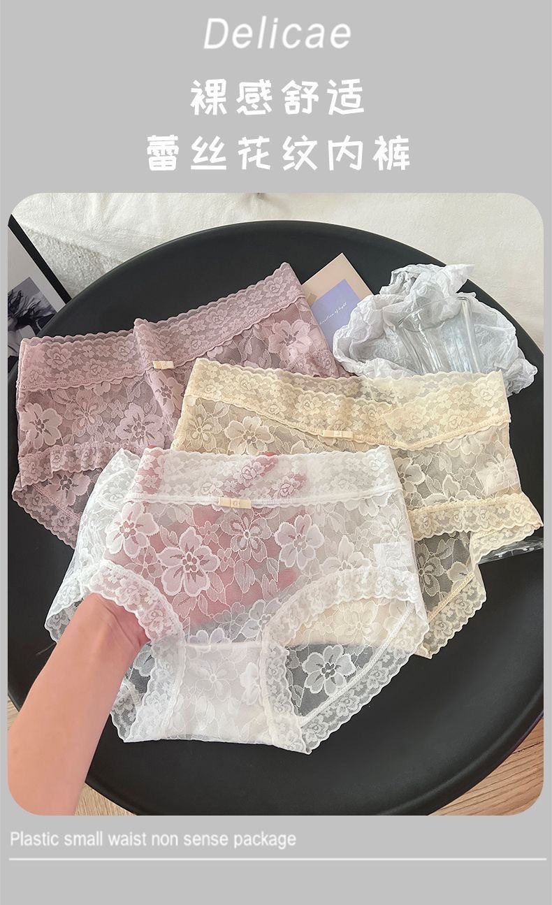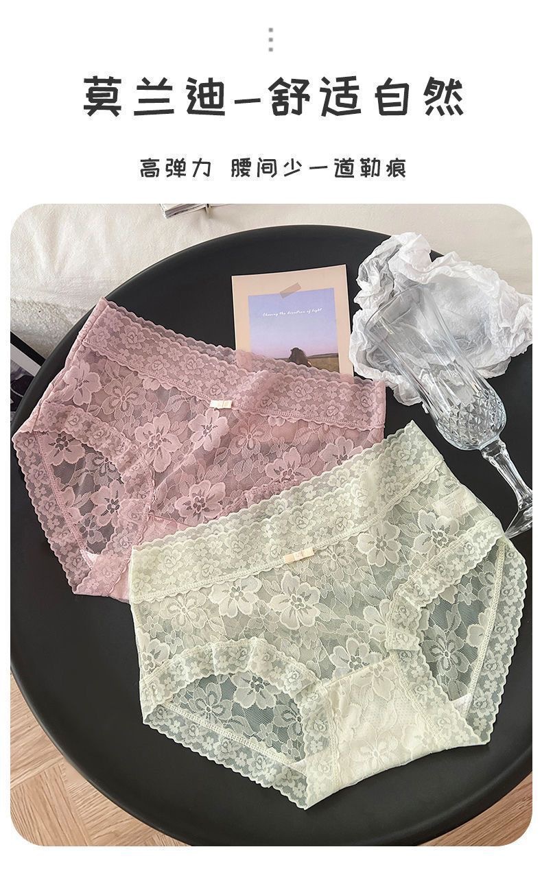 여성을 위한 새로운 프랑스 섹시한 레이스 속옷, 무봉제 항균 면 가랑이 중간 허리, 피부 친화적인 통기성 여성용 투명 팬티스토어 가기