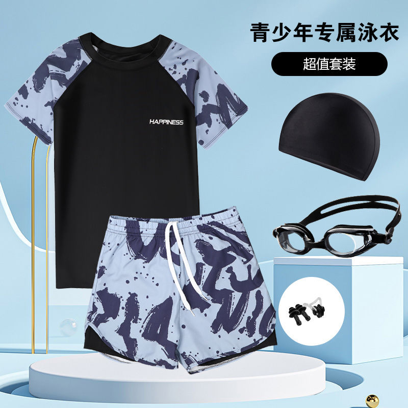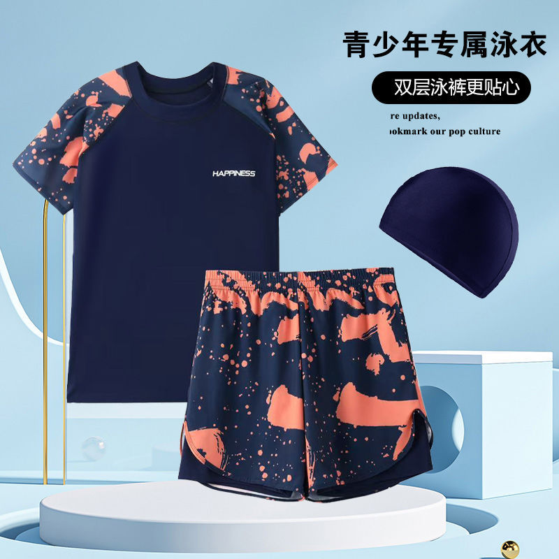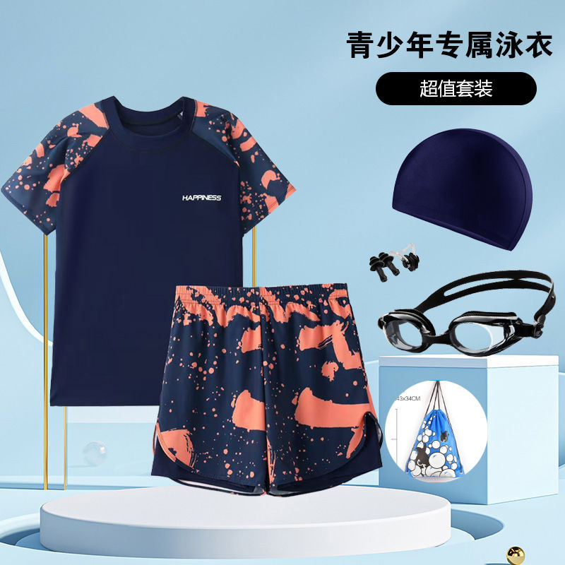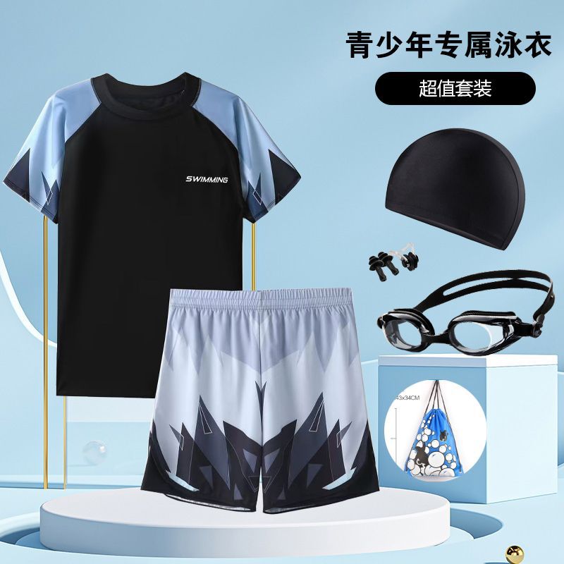아동수영복, 남아용 스플릿 수영복, 중대형 아동, 청소년, 중학생, 뚱뚱한 남아용 전문 수영복, 플러스 사이즈