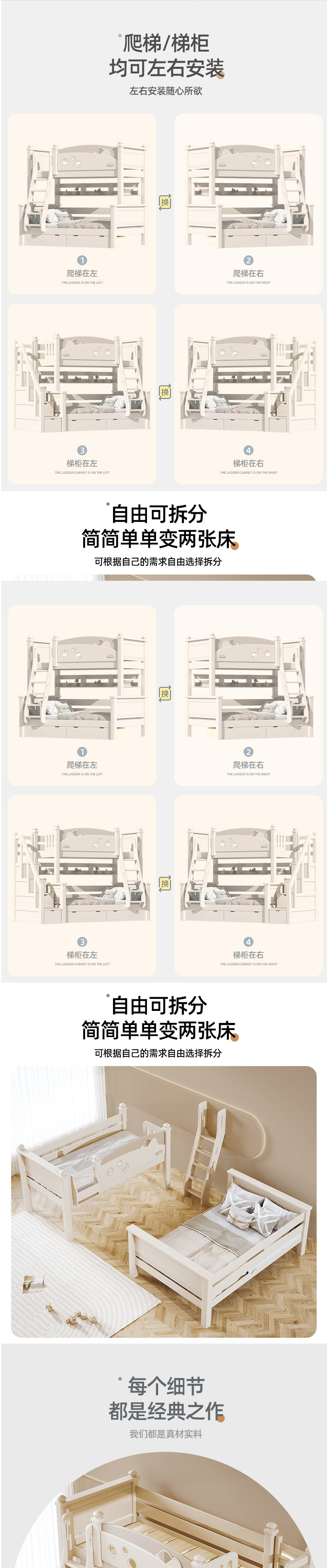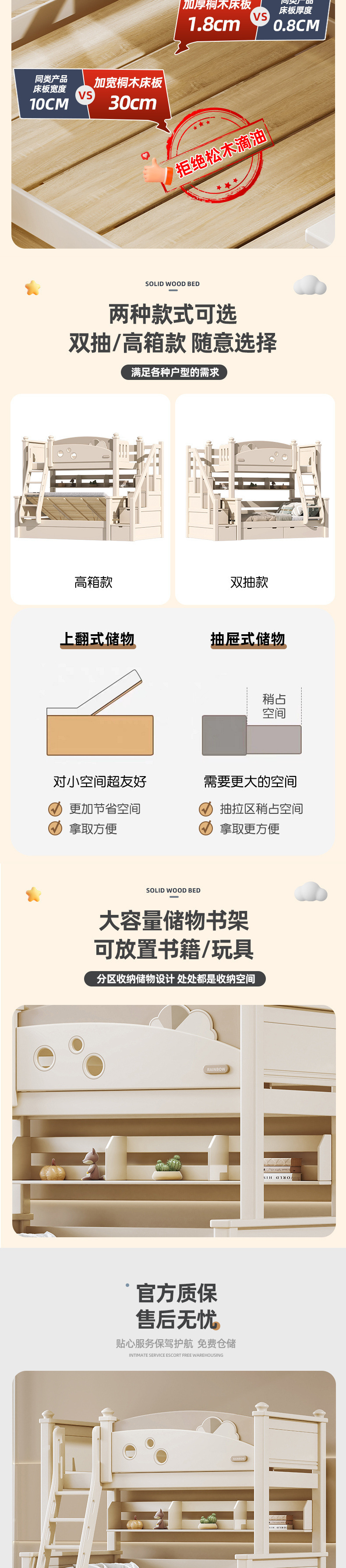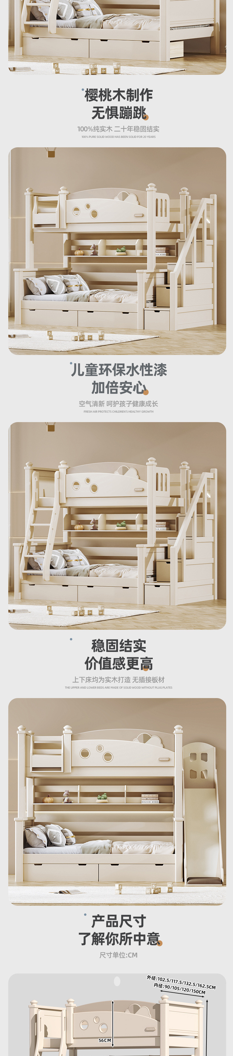 2025 새로운 스타일 이층 침대 전체 단단한 나무 이층 침대 체리 나무 높낮이 침대 남성과 여성스토어 가기