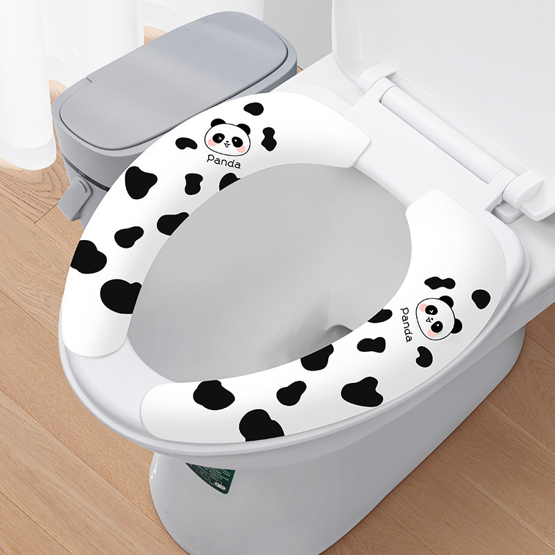 사계절 사용하기 좋은 귀여운 팬더 변기 방수 변기 매트 가정용 접착식 욕실 흔적 없는 변기 시트 커버