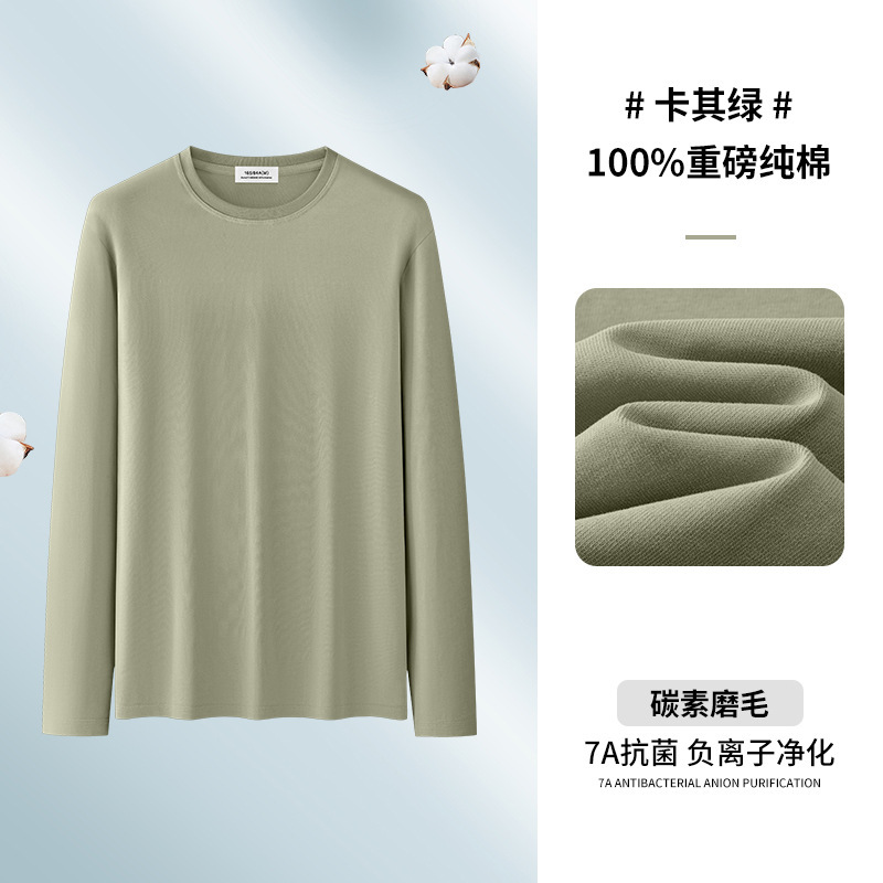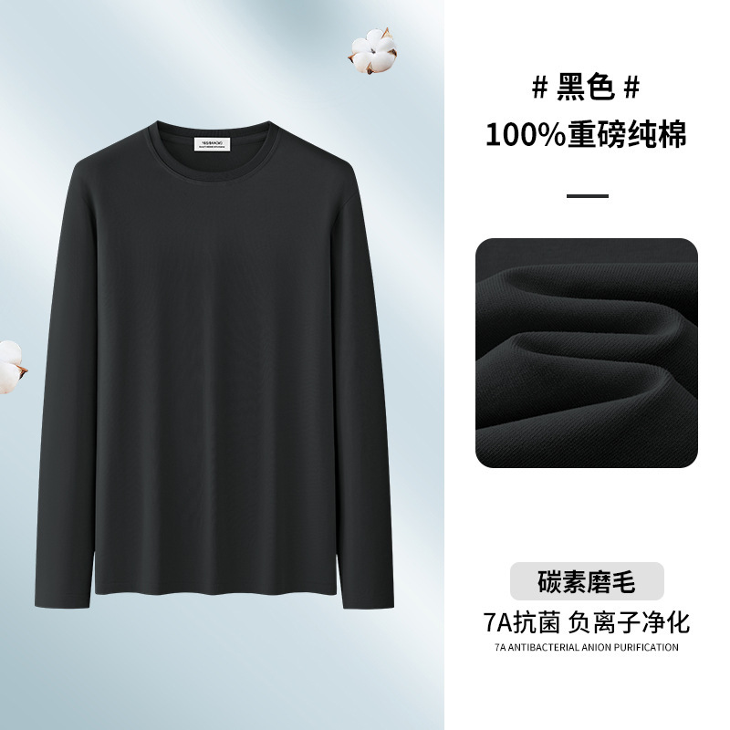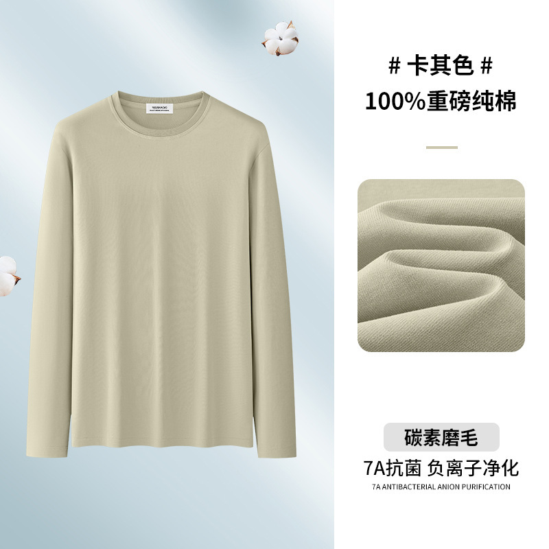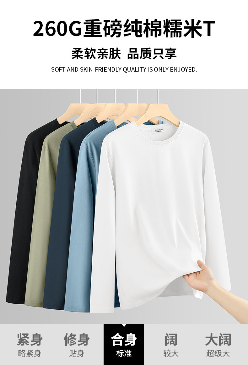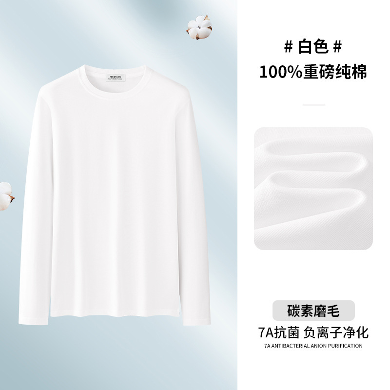 260g 헤비급 순수 코튼 라운드 넥 화이트 긴팔 티셔츠 남성용 바닥 셔츠 봄 소년 다용도 탑 의류 남성 의류스토어 가기