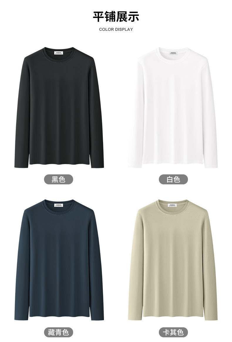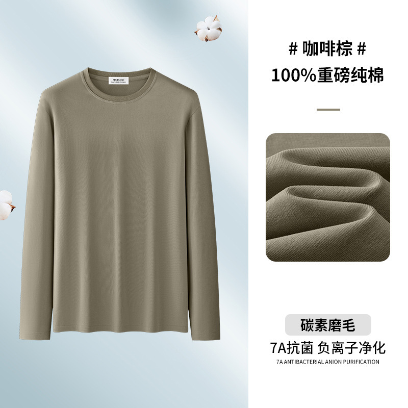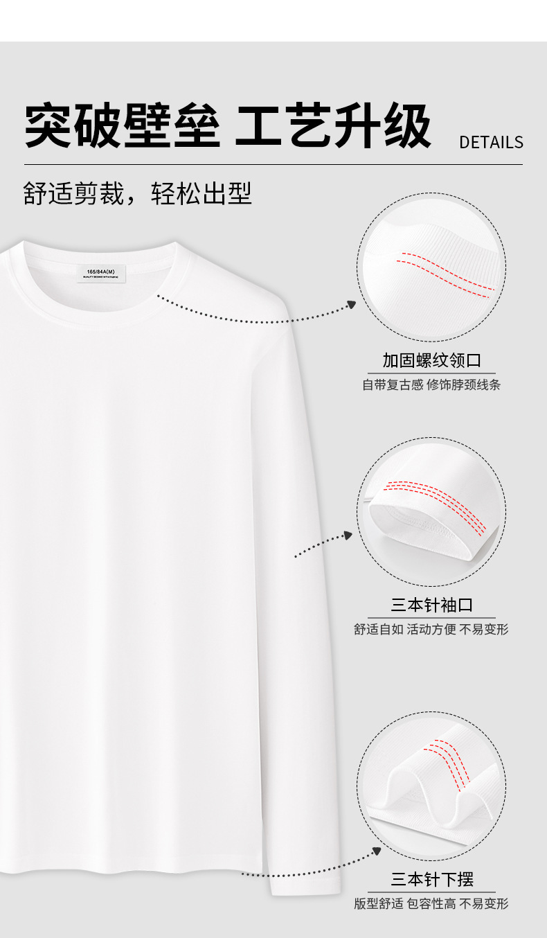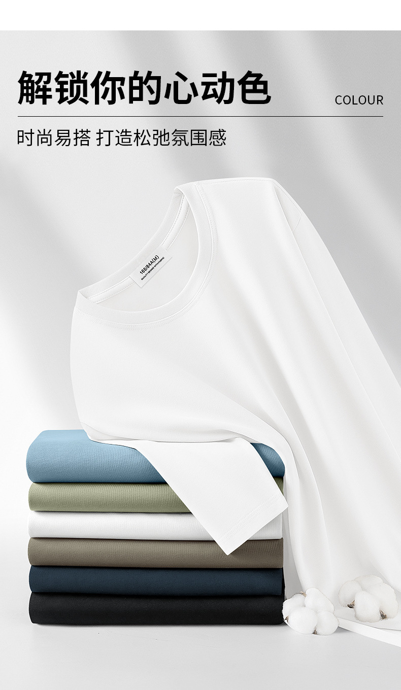 260g 헤비급 순수 코튼 라운드 넥 화이트 긴팔 티셔츠 남성용 바닥 셔츠 봄 소년 다용도 탑 의류 남성 의류스토어 가기