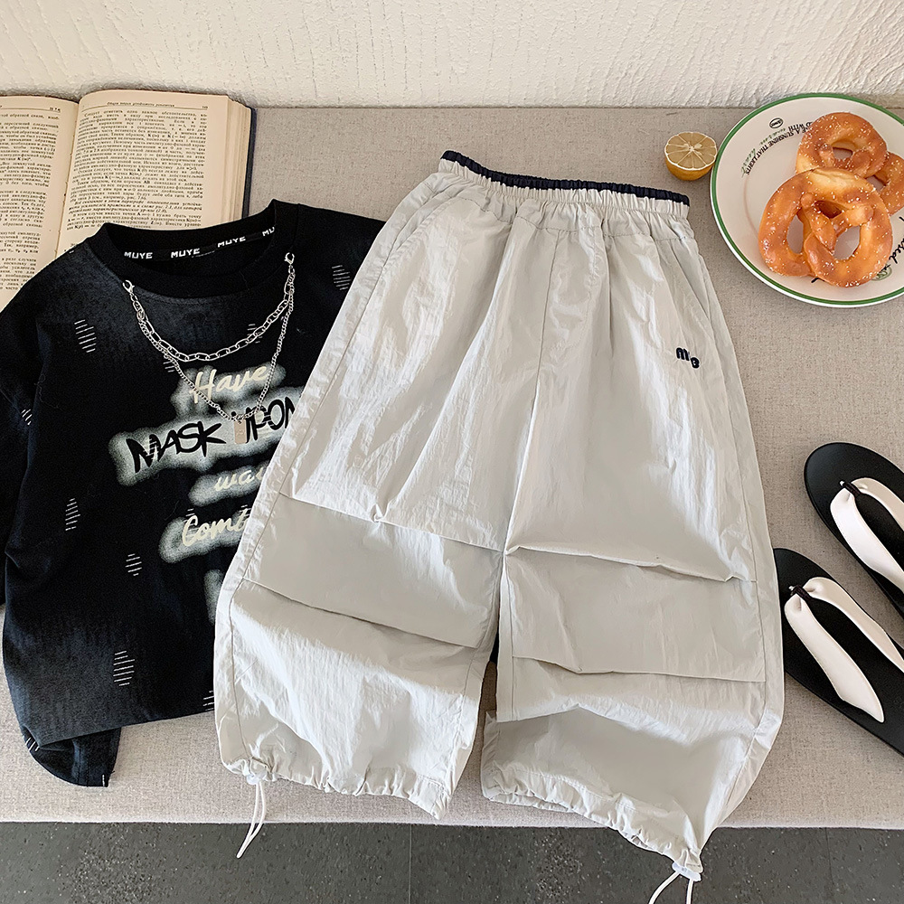 여름 Huzhou Zhili 아동복 대비 컬러 크레인 바지 소년 용 아기 잘 생긴 바지 야마모토 바지