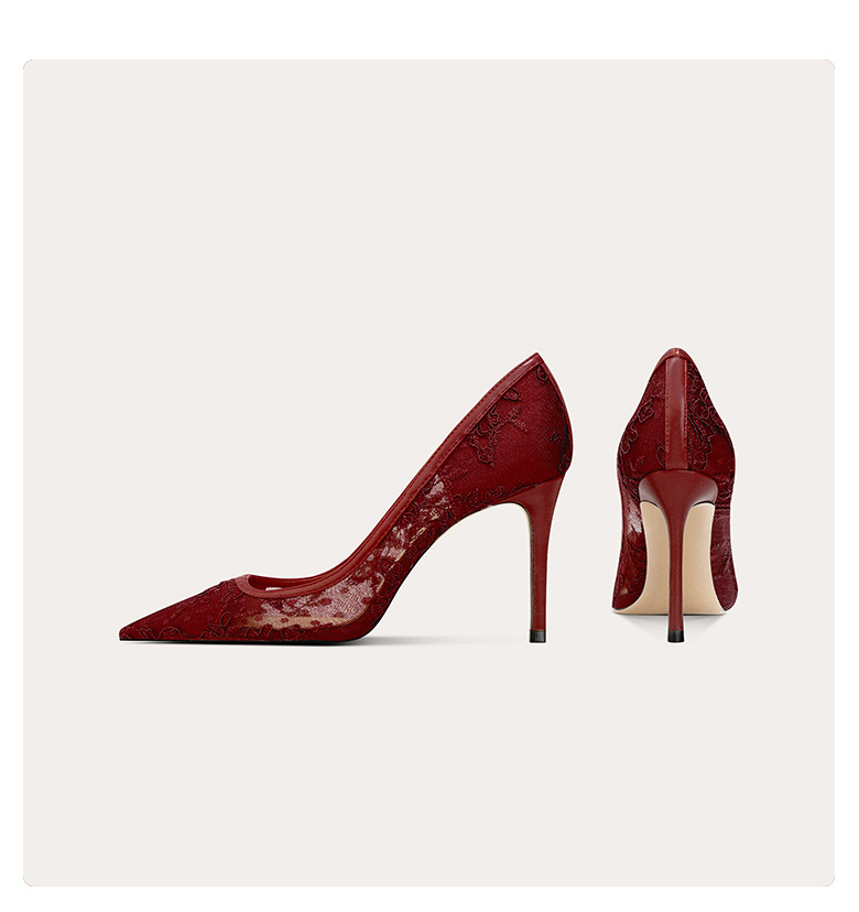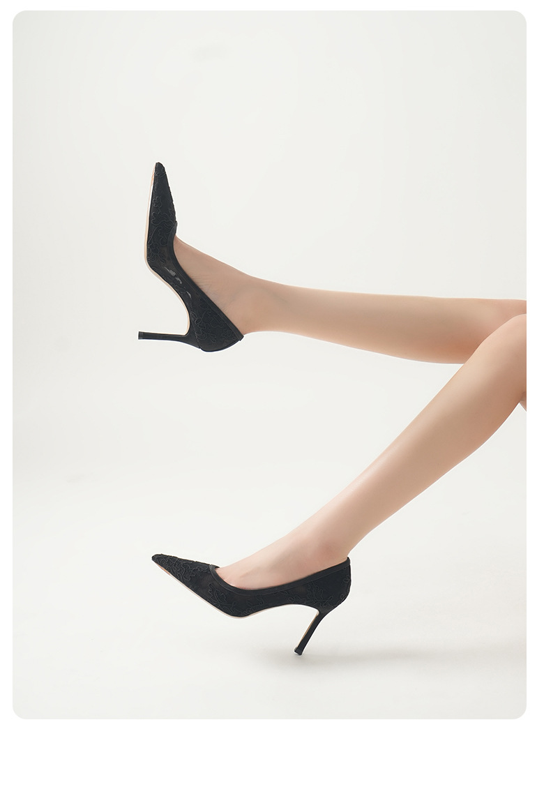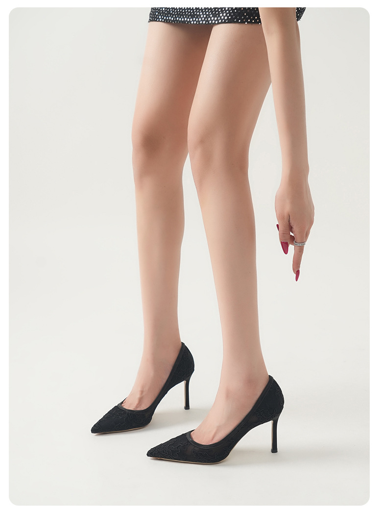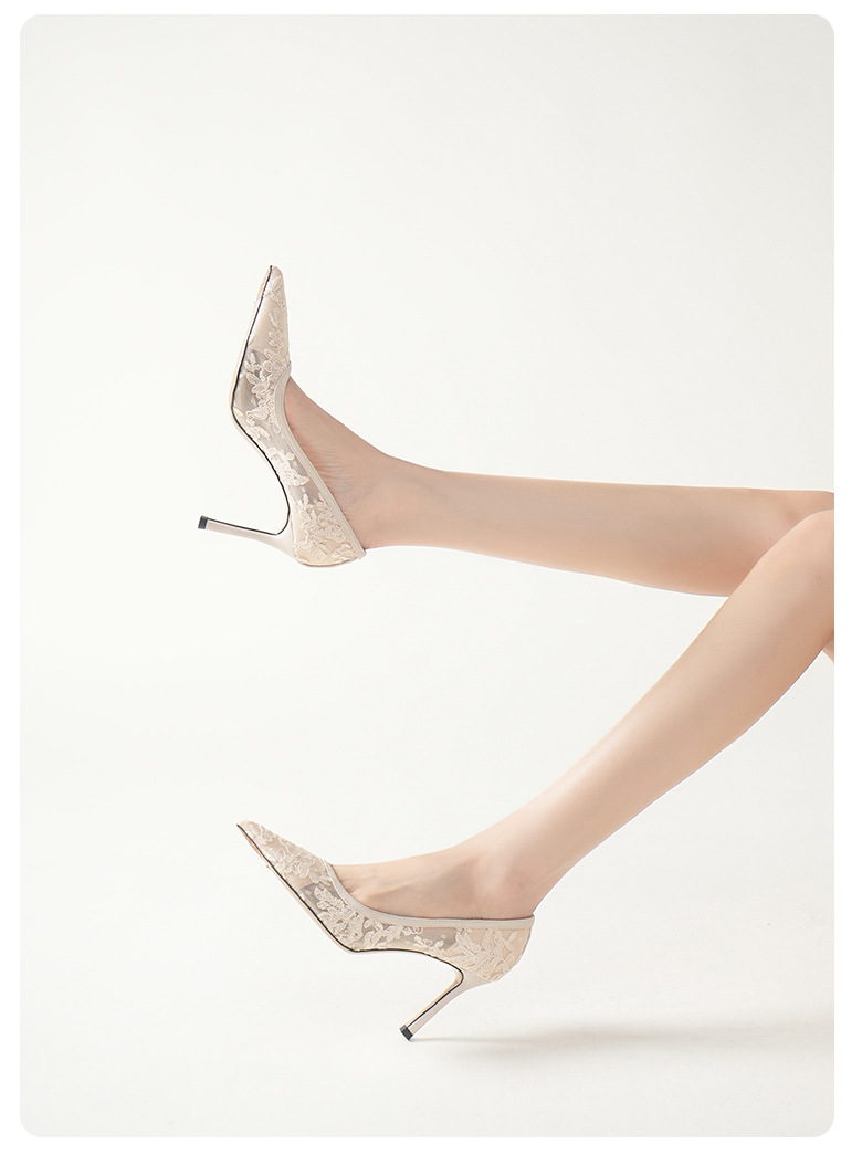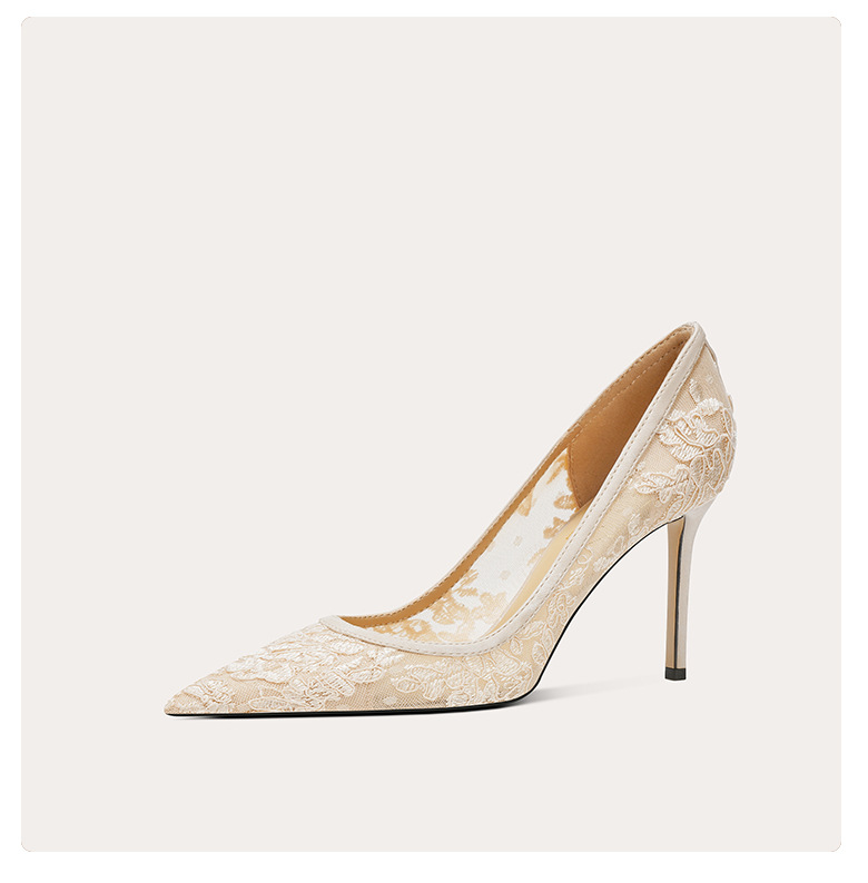 718-1 여성용 하이힐 2025 뉴 여름 레이스 통기성 중공 인터넷 연예인 요정 뾰족한 양가죽 펌프스
