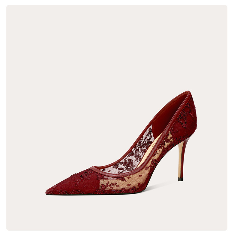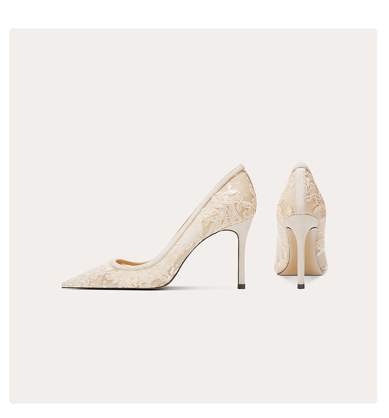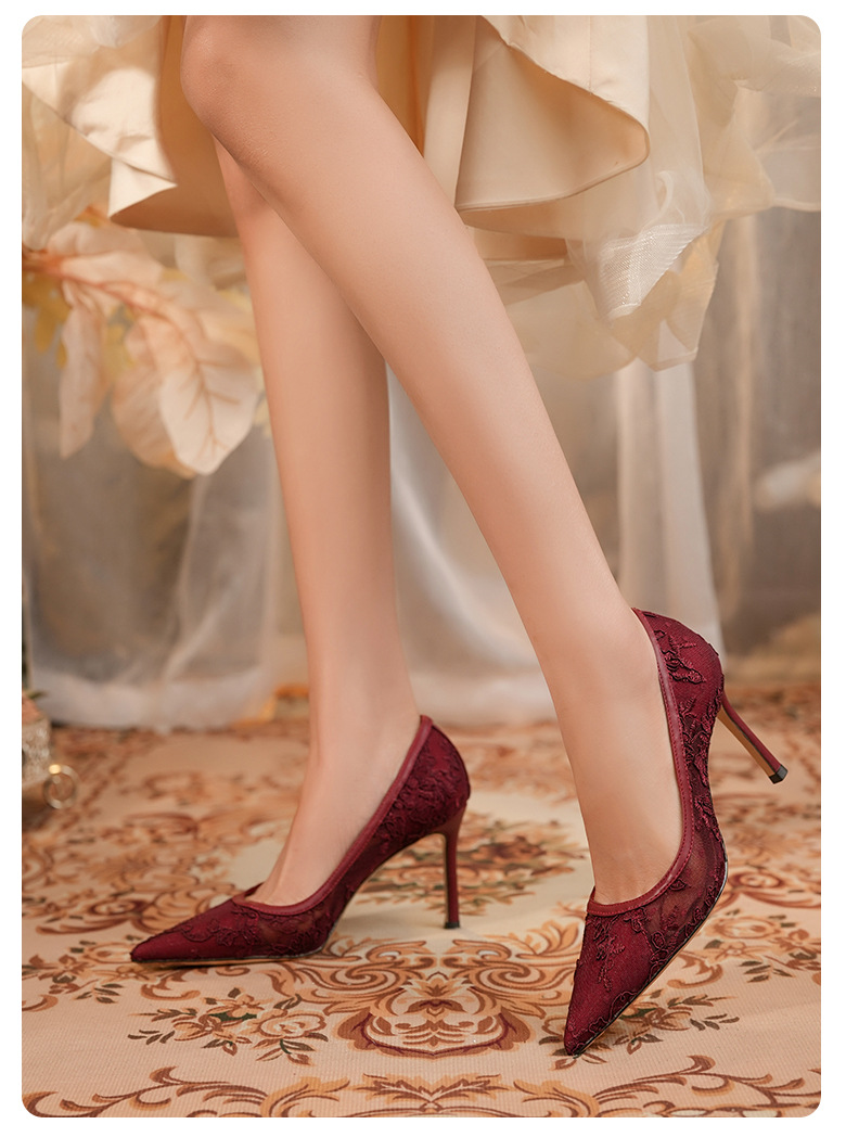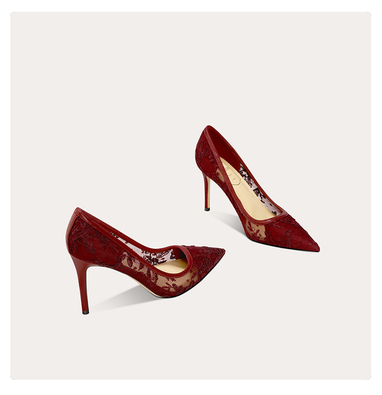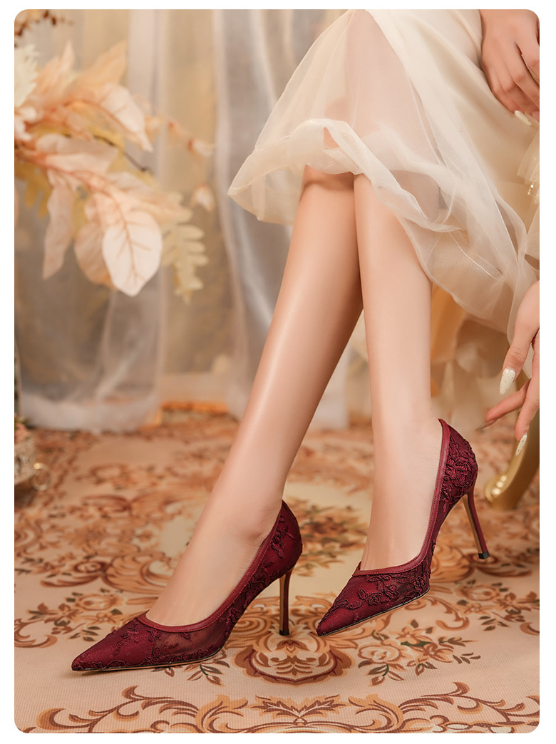 718-1 여성용 하이힐 2025 뉴 여름 레이스 통기성 중공 인터넷 연예인 요정 뾰족한 양가죽 펌프스