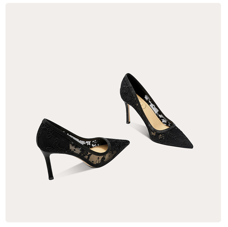 718-1 여성용 하이힐 2025 뉴 여름 레이스 통기성 중공 인터넷 연예인 요정 뾰족한 양가죽 펌프스스토어 가기