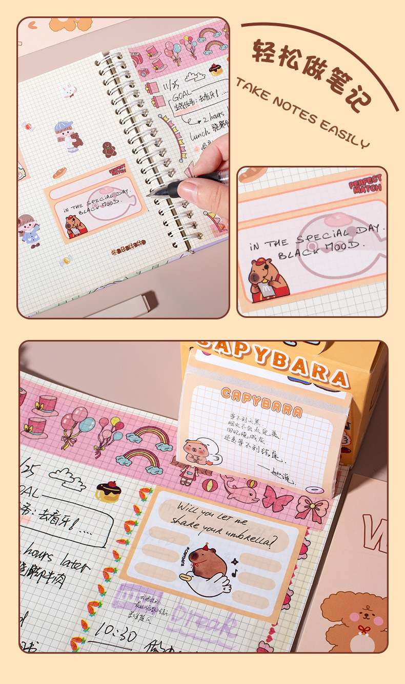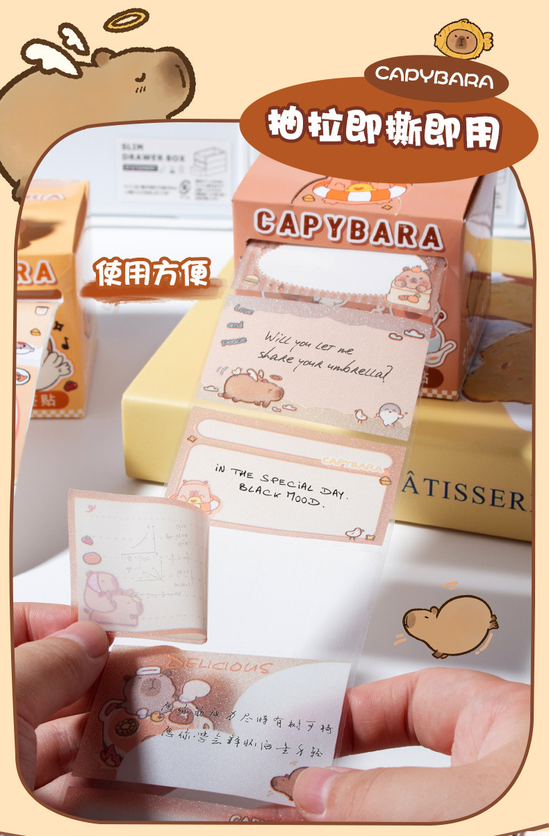 학생들을위한 귀여운 Capybara 풀업 포스트잇 노트 학생 휴일 선물을위한 높은 색상 가치 강한 스티커 노트
