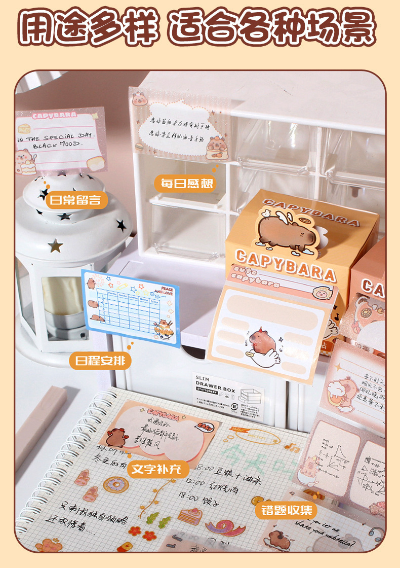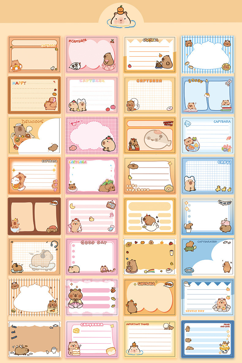 학생들을위한 귀여운 Capybara 풀업 포스트잇 노트 학생 휴일 선물을위한 높은 색상 가치 강한 스티커 노트스토어 가기
