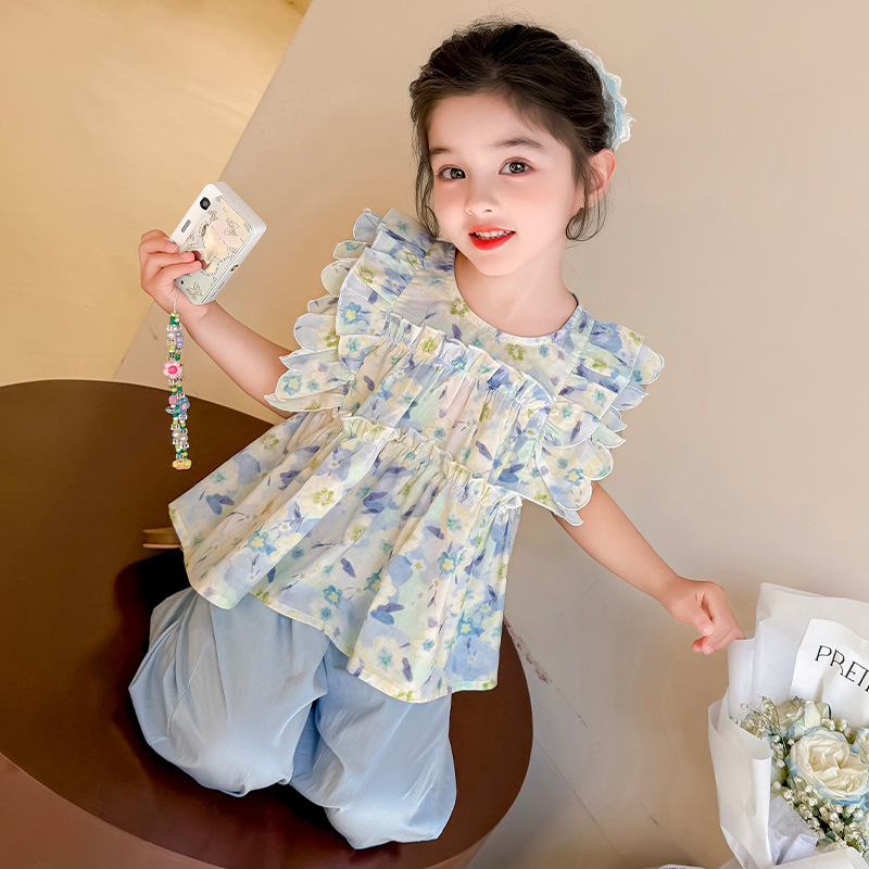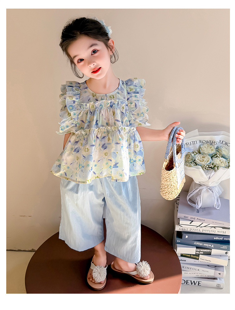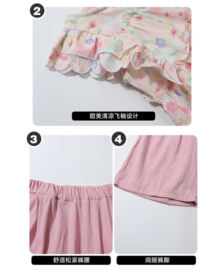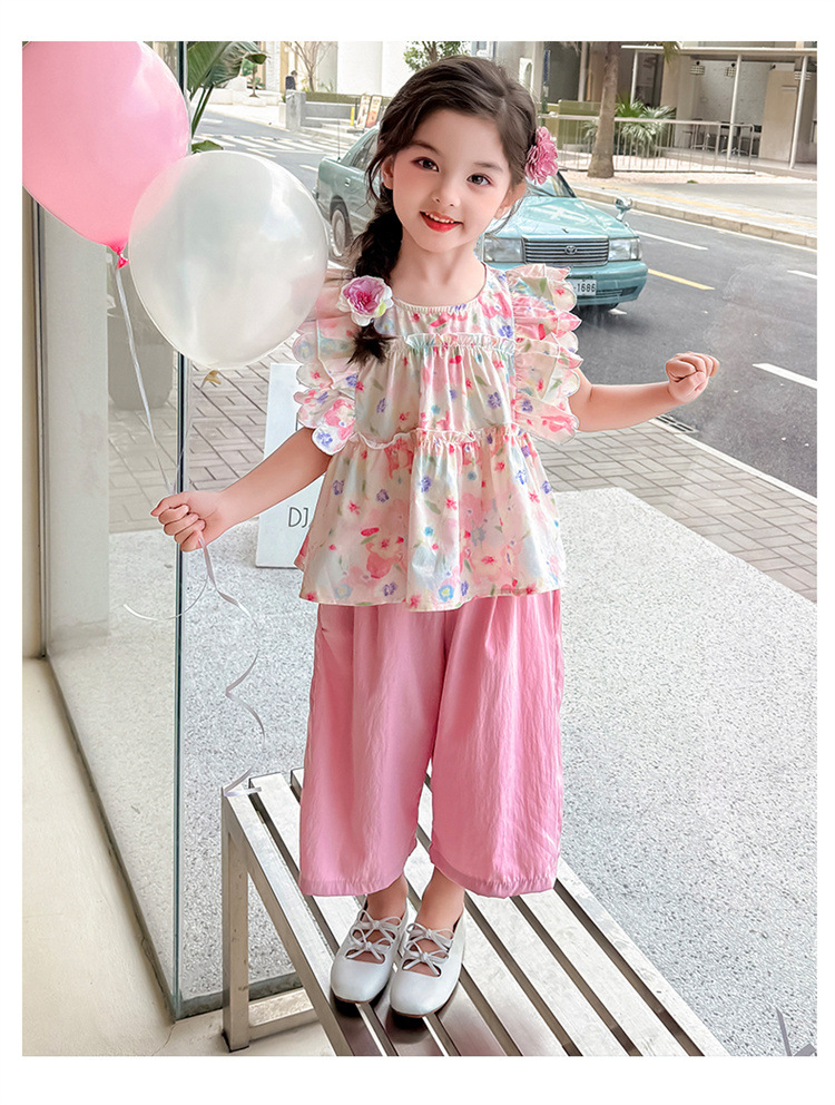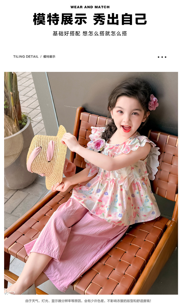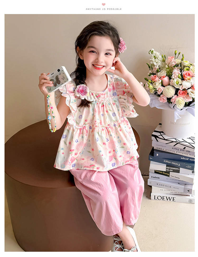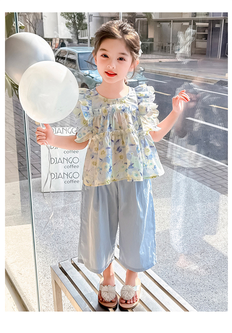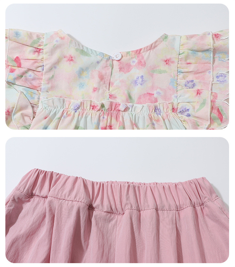 소녀 꽃 플라워 슬리브 세트 2025 여름 새로운 패션 소녀 세련된 투피스 세트 중소 어린이 여름 원피스스토어 가기