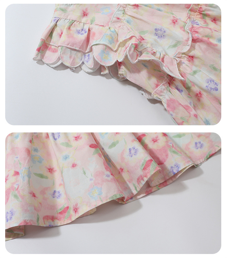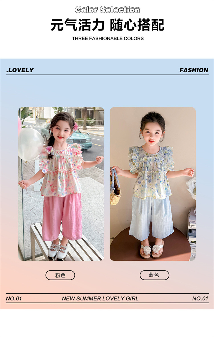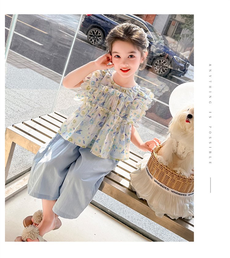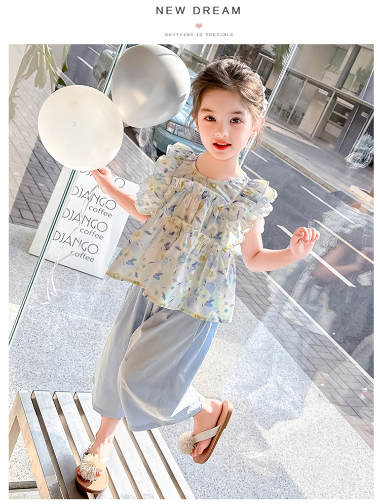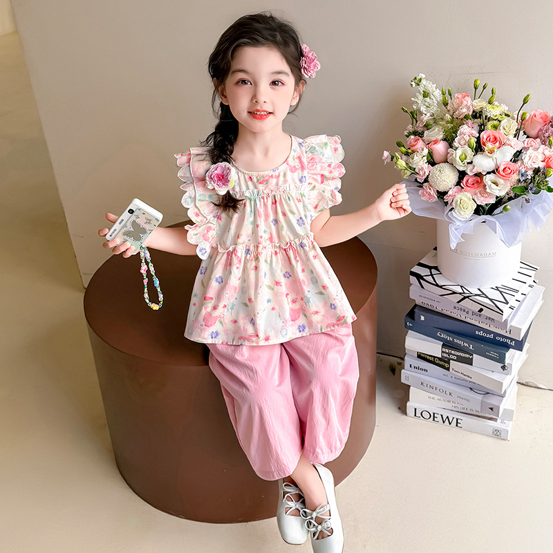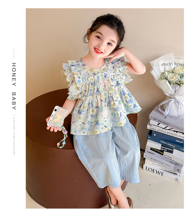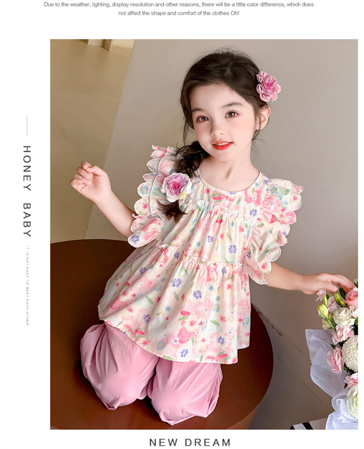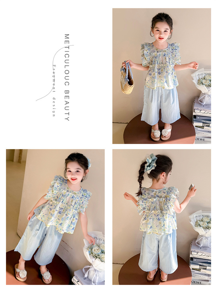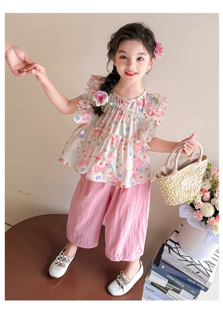 소녀 꽃 플라워 슬리브 세트 2025 여름 새로운 패션 소녀 세련된 투피스 세트 중소 어린이 여름 원피스스토어 가기