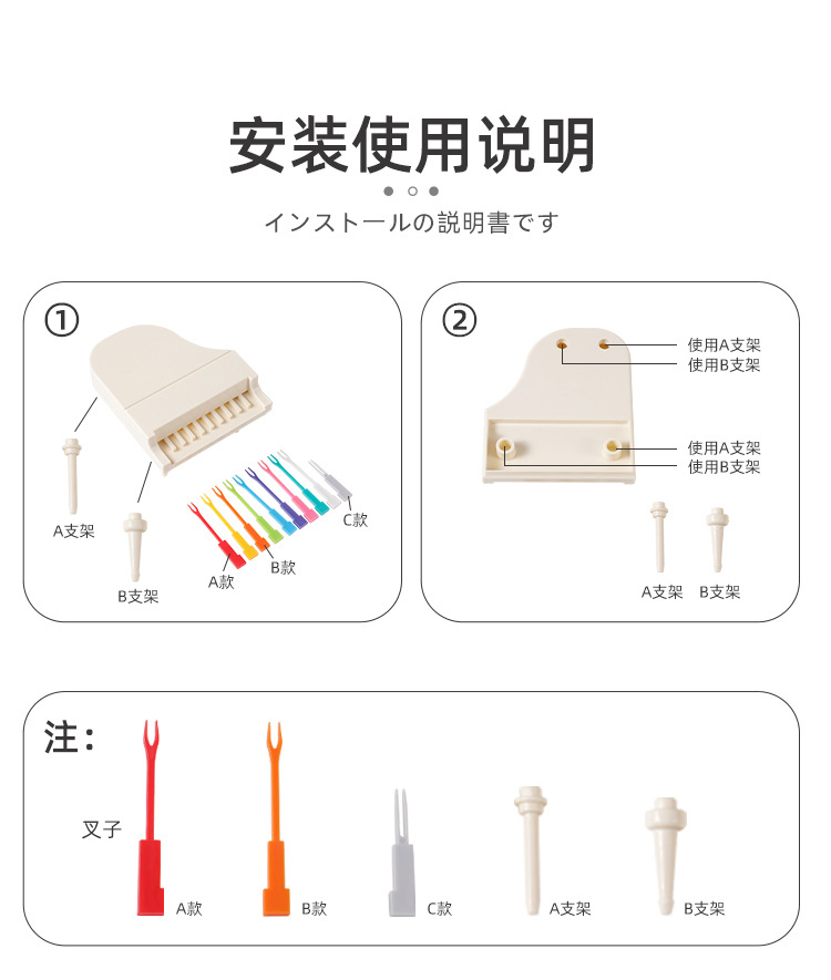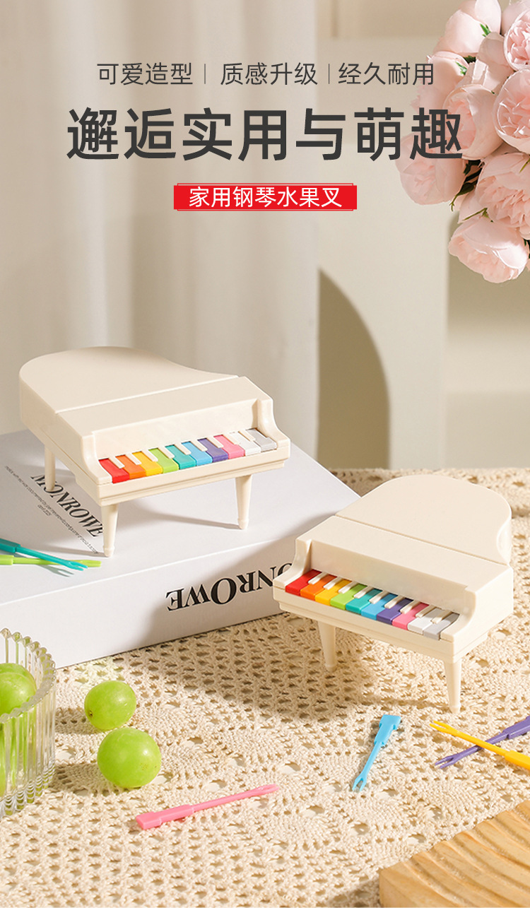 • 商品名称:钢琴造型琴键水果叉--奶油色+七彩叉子