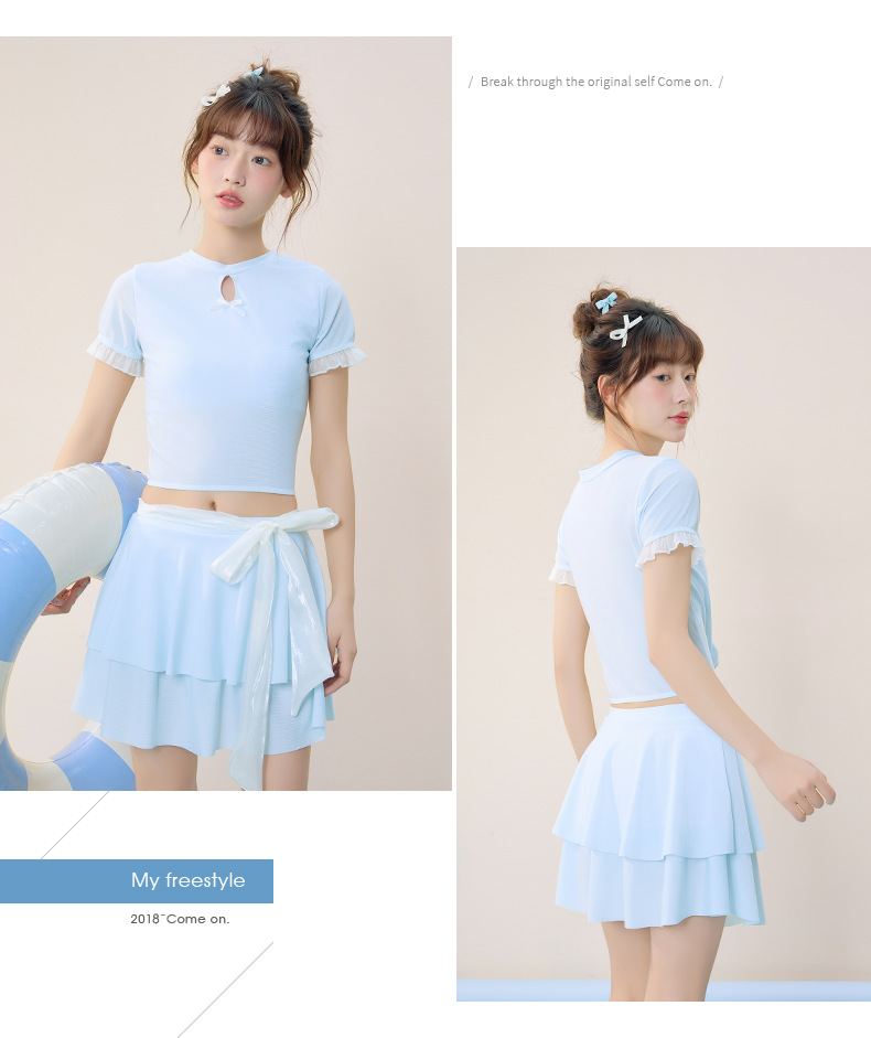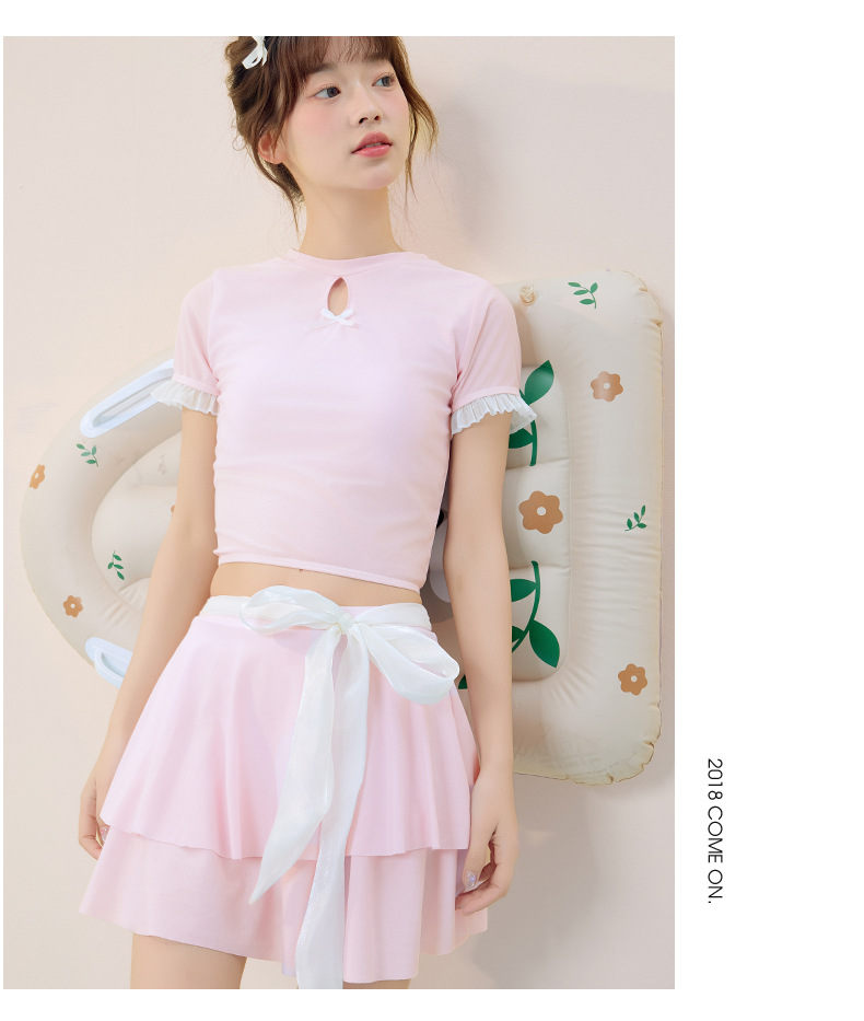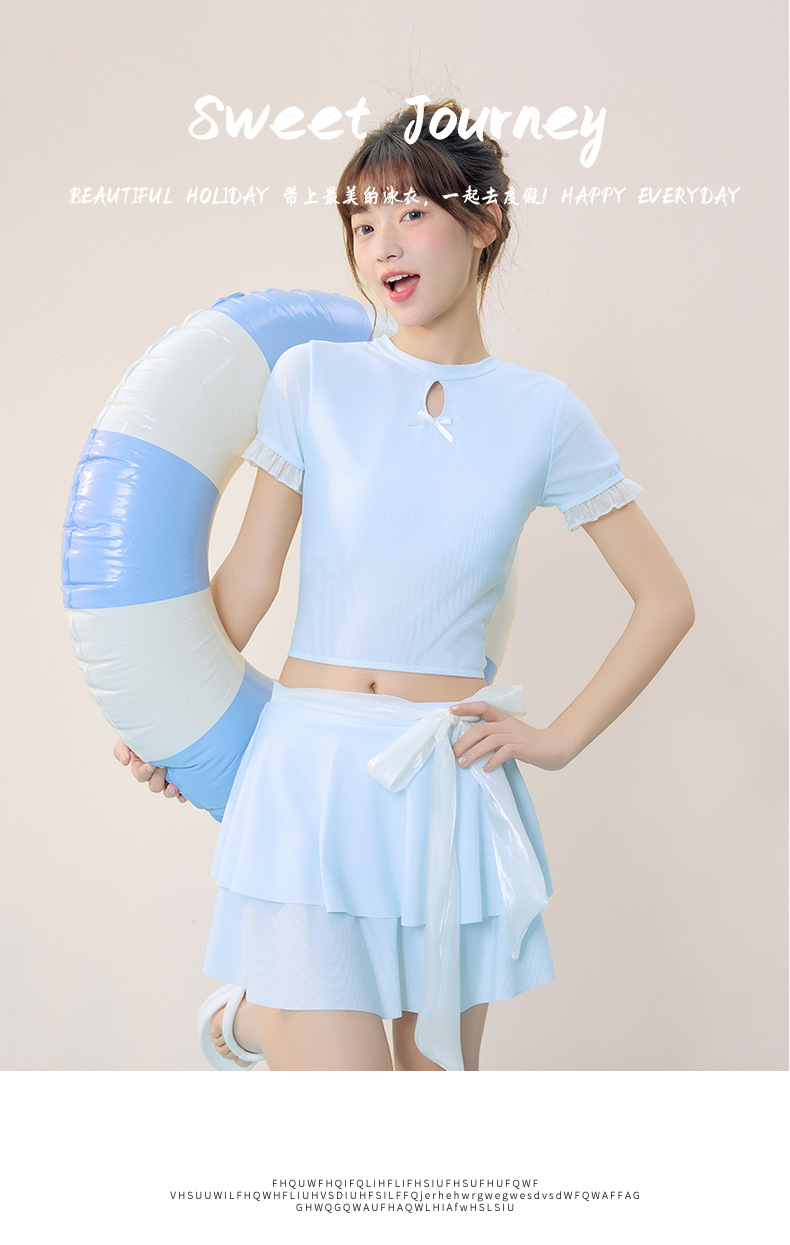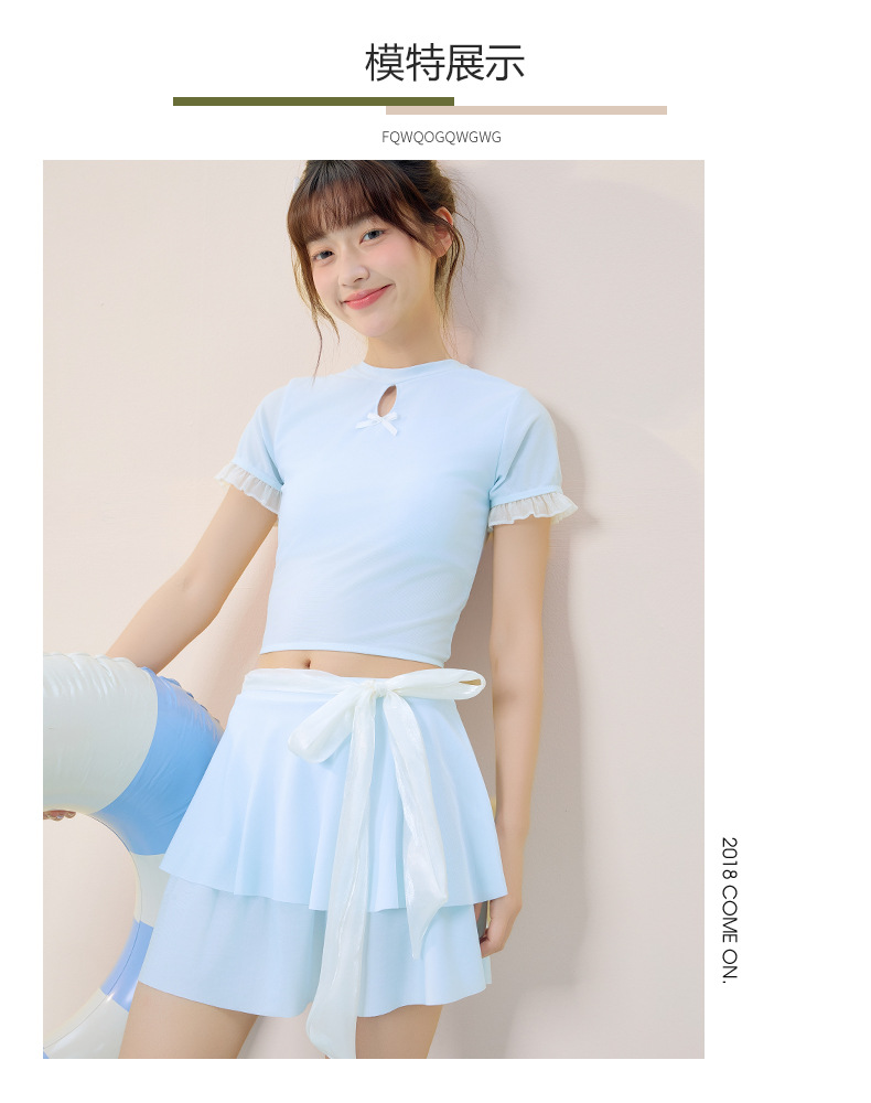 어린이 수영복 소녀 큰 어린이 폴리 에스터 분할 투피스 세트 한국 스타일 신선한 스타일 소녀 달콤한 휴일 뜨거운 봄 수영복스토어 가기