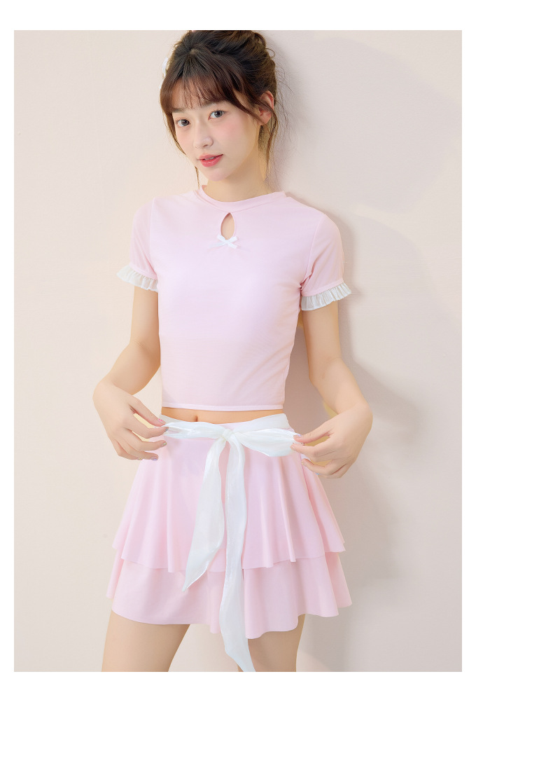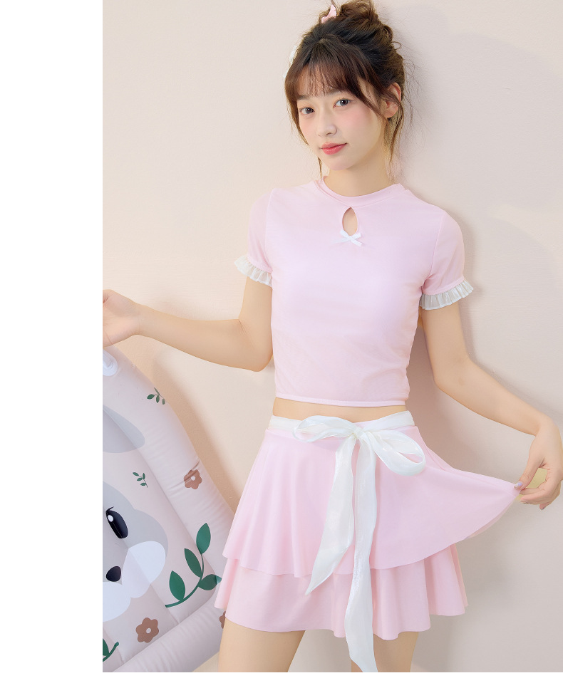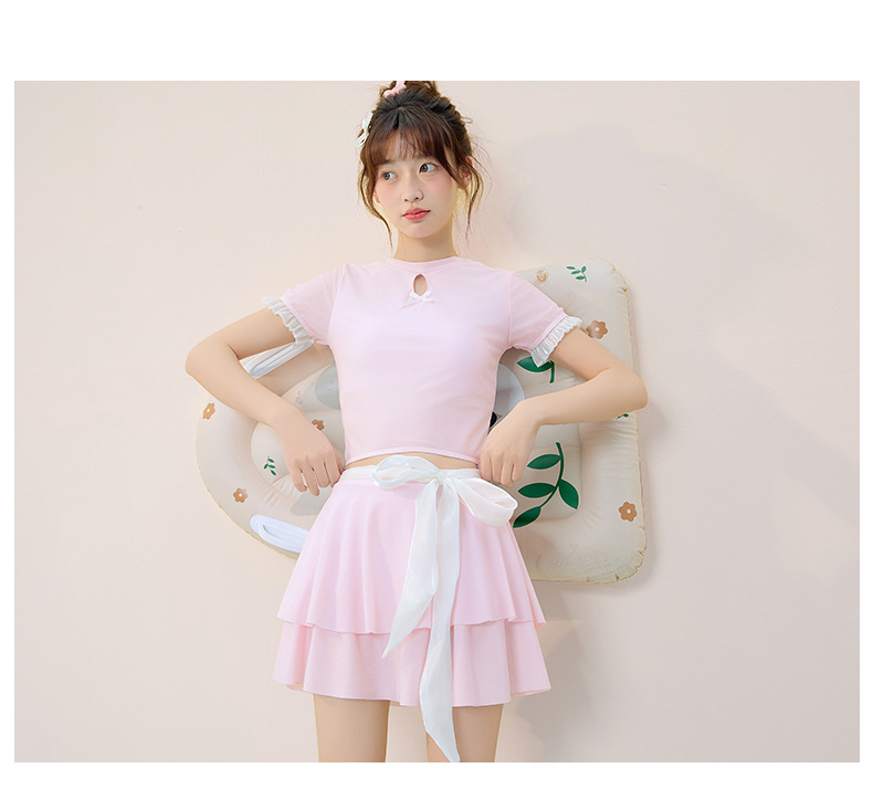 어린이 수영복 소녀 큰 어린이 폴리 에스터 분할 투피스 세트 한국 스타일 신선한 스타일 소녀 달콤한 휴일 뜨거운 봄 수영복