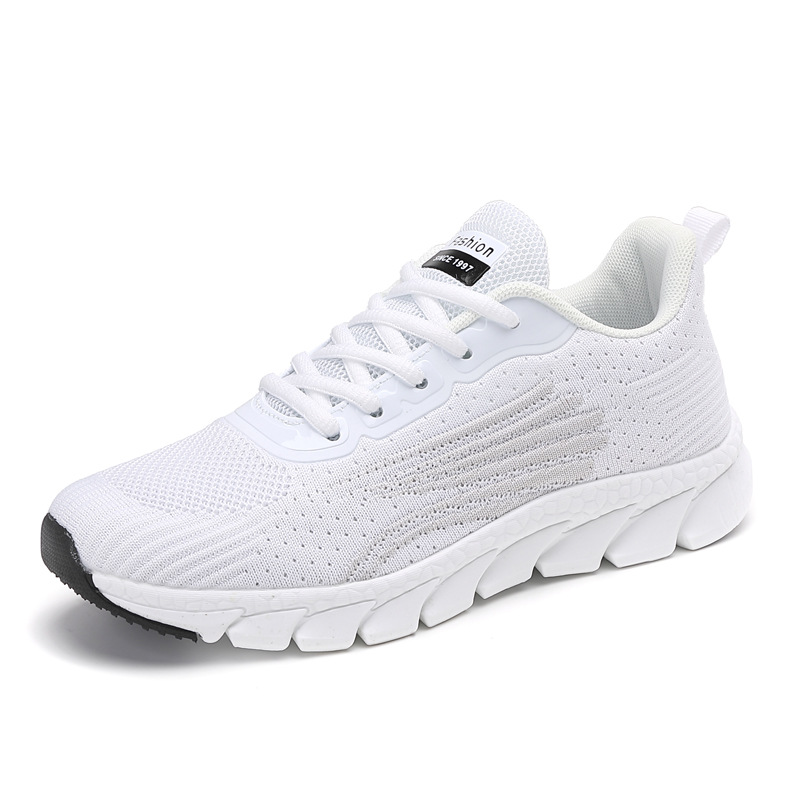 2025 봄 새로운 플라이 짠 통기성 운동화 스포츠 여성 캐주얼 신발 부드러운 바닥 커플 스타일 남성과 여성의 흰색 신발