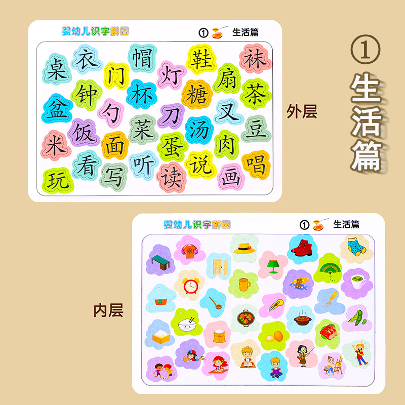 문해력 퍼즐 3-6 세 유아 장난감 아기 조기 교육 어린이 재미있는 독서 차트 중국어 문자 카드 인식스토어 가기
