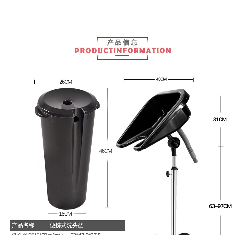 미용실용 편리한 수직 샴푸대, 살롱용 리프팅 가능, 양동이가 있는 이동식 경량 샴푸대