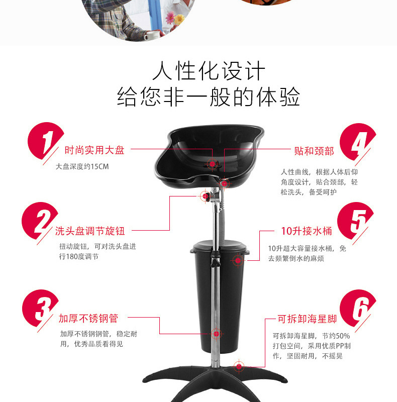 미용실용 편리한 수직 샴푸대, 살롱용 리프팅 가능, 양동이가 있는 이동식 경량 샴푸대스토어 가기