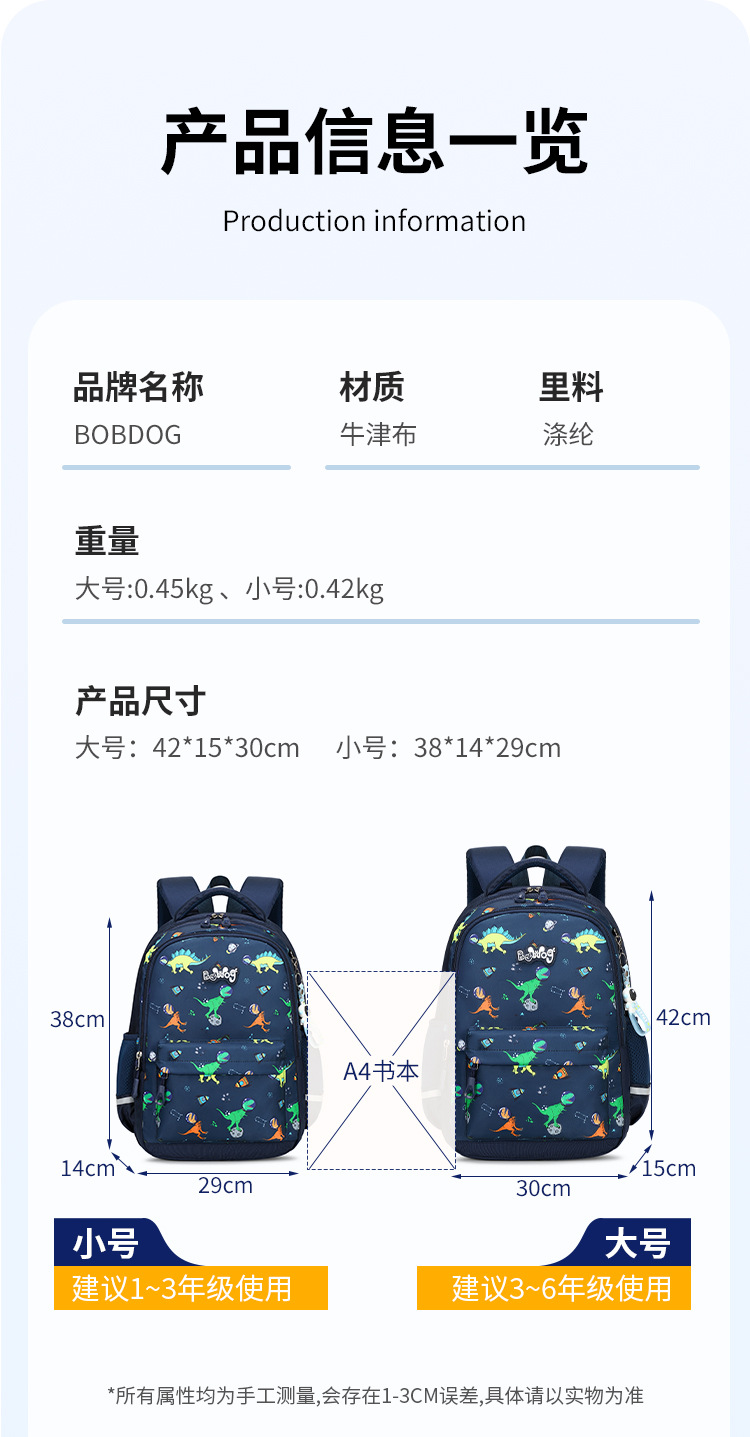 Babu Dou 1 학년 학교 가방 초등학교 소년 소년 남성 2 초경량 소프트 어린이 2025 새 소년스토어 가기