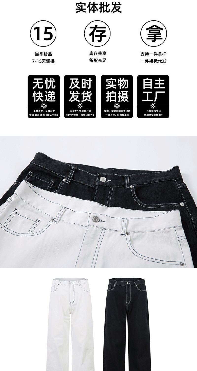 오리지널 대외 무역 제품 2025 새로운 루즈한 하이웨이스트 와이드 레그 스트레이트 팬츠 청바지 여성 및 남성용 캐주얼 바지스토어 가기