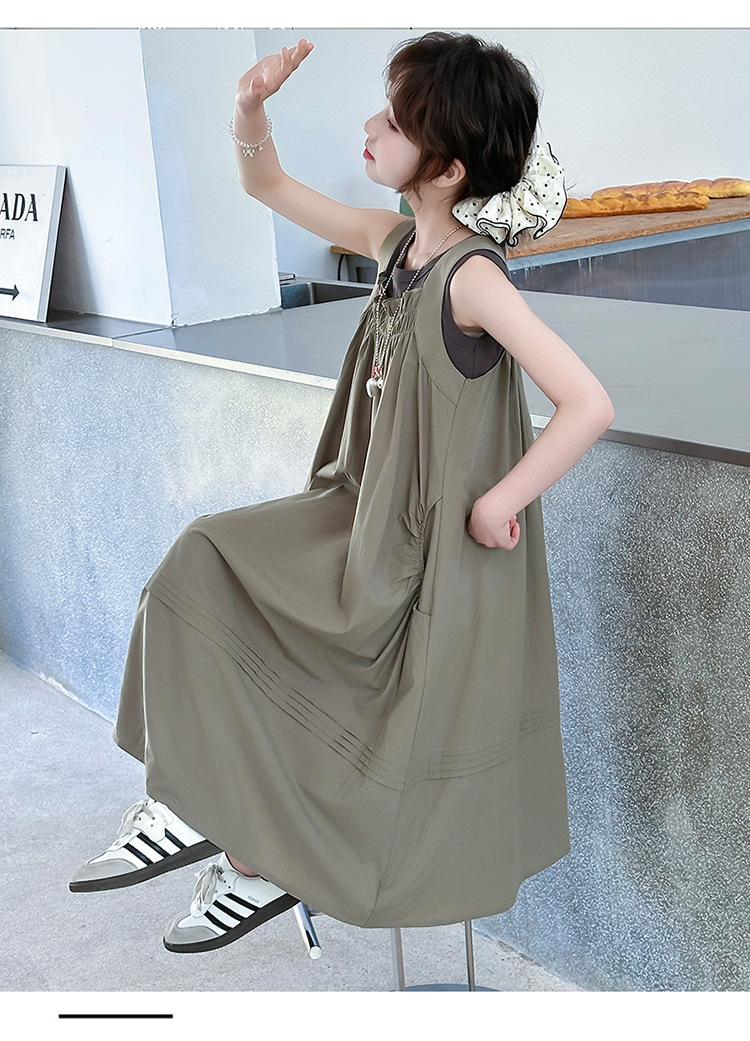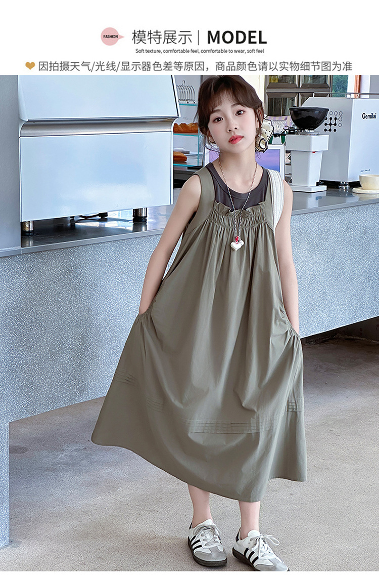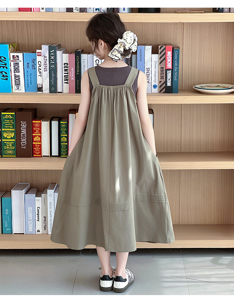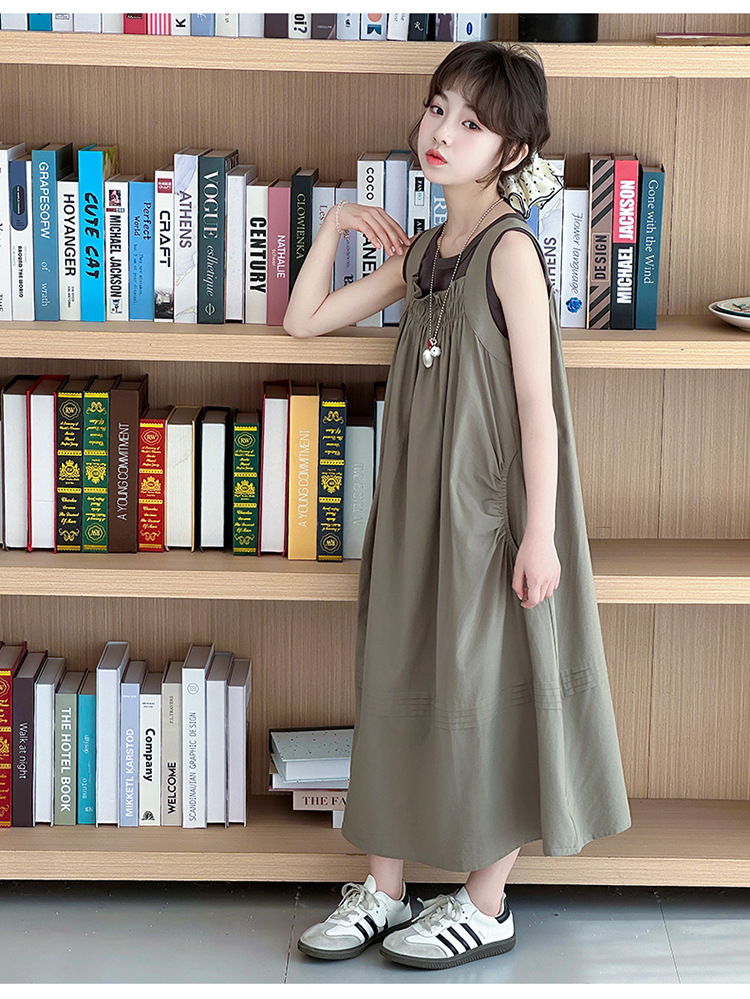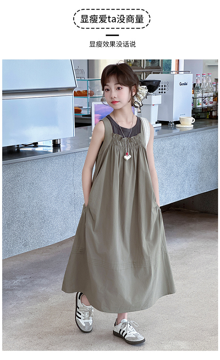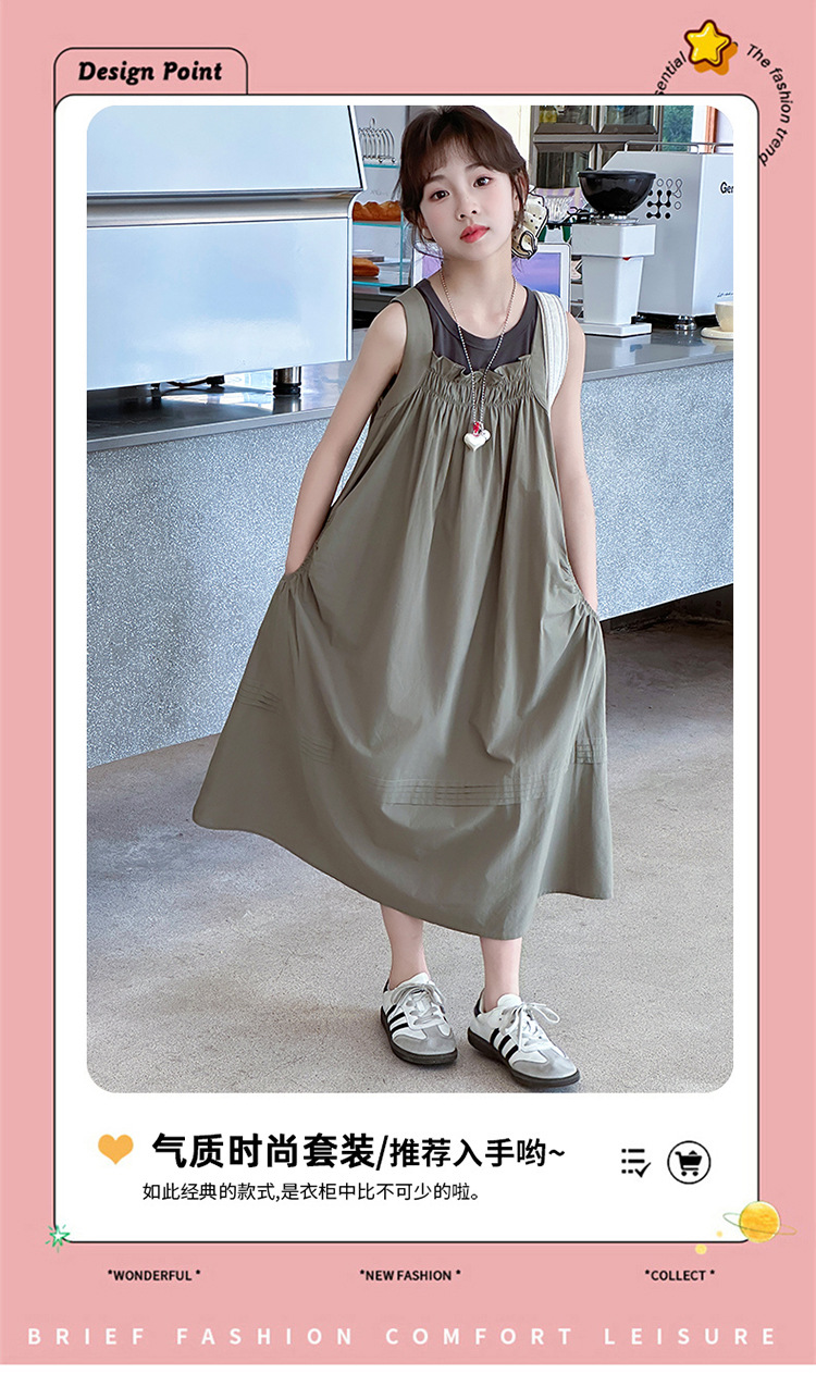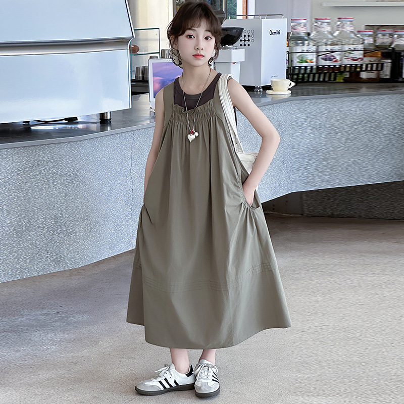 소녀 게으른 스타일 스트랩 스커트 세트 여름 2025 새로운 소녀 한국 스타일 느슨한 슬림 슬링 원피스
