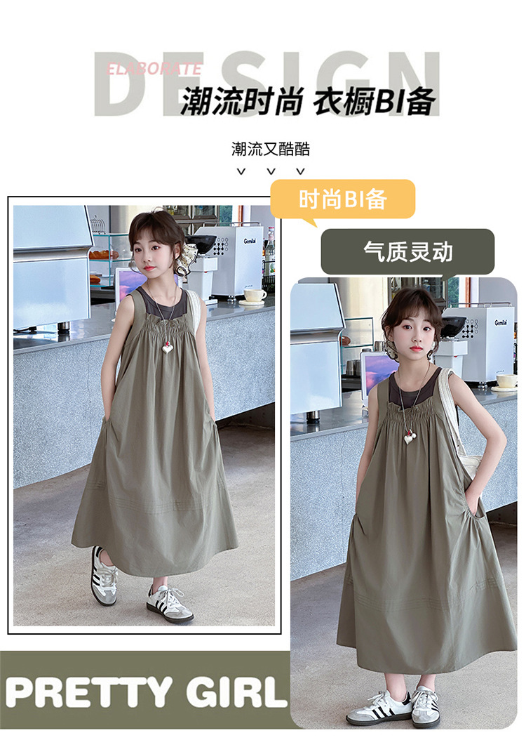 소녀 게으른 스타일 스트랩 스커트 세트 여름 2025 새로운 소녀 한국 스타일 느슨한 슬림 슬링 원피스스토어 가기