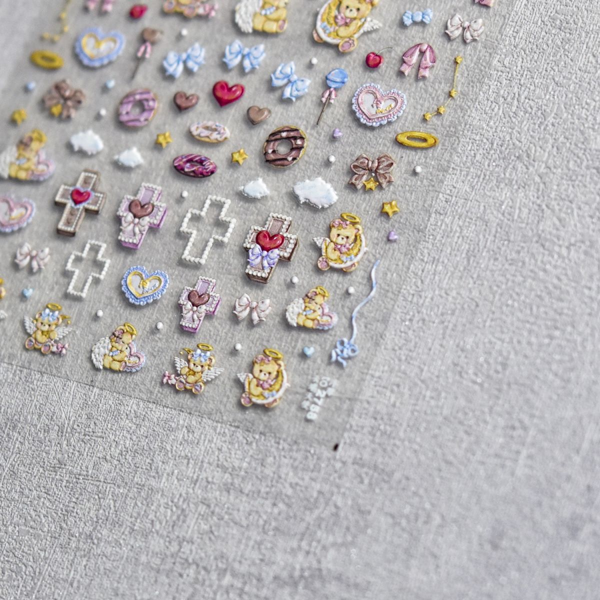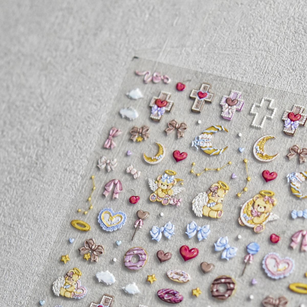 한국 인스 히트 엔젤 네일 아트 스티커 diy 워터 컵 휴대 전화 스티커 양각 입체 스티커 바로크 베어