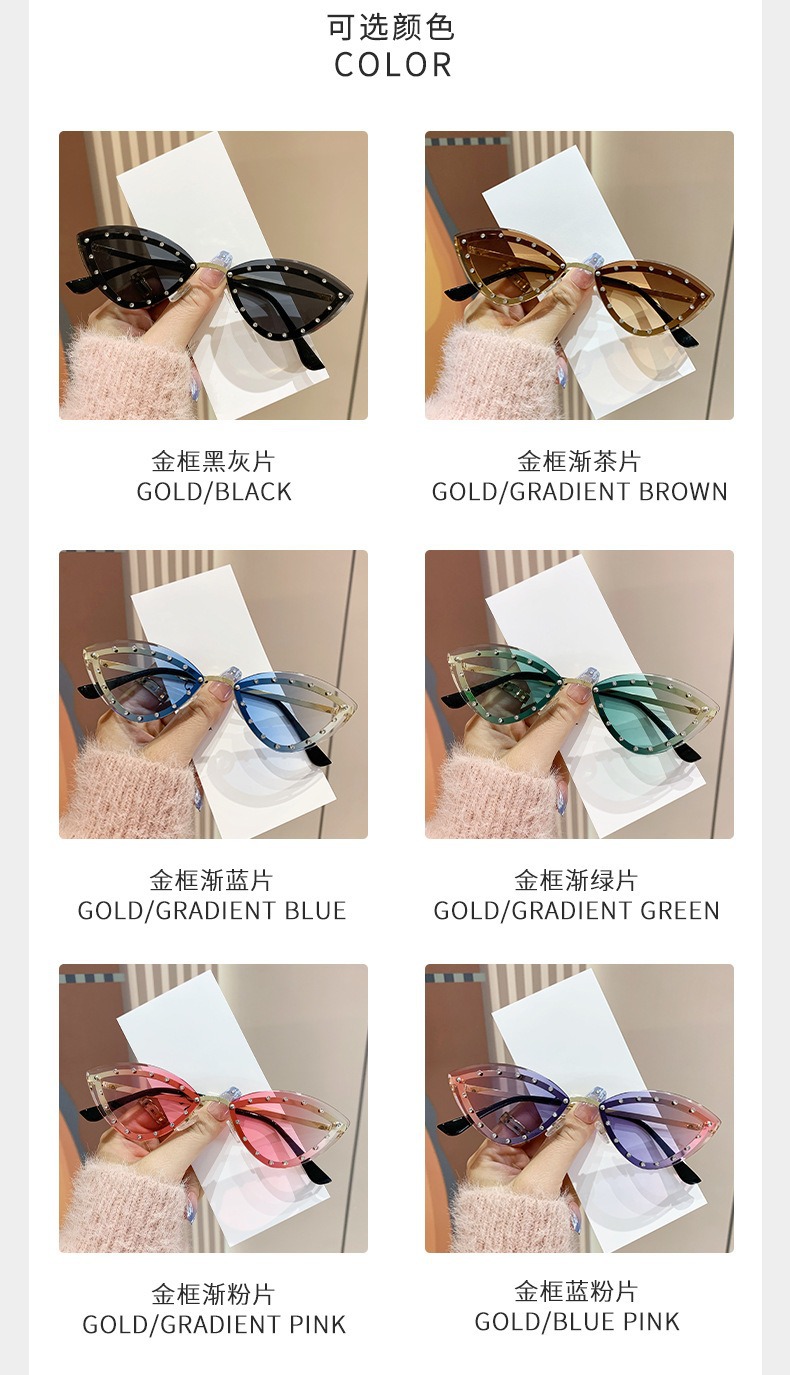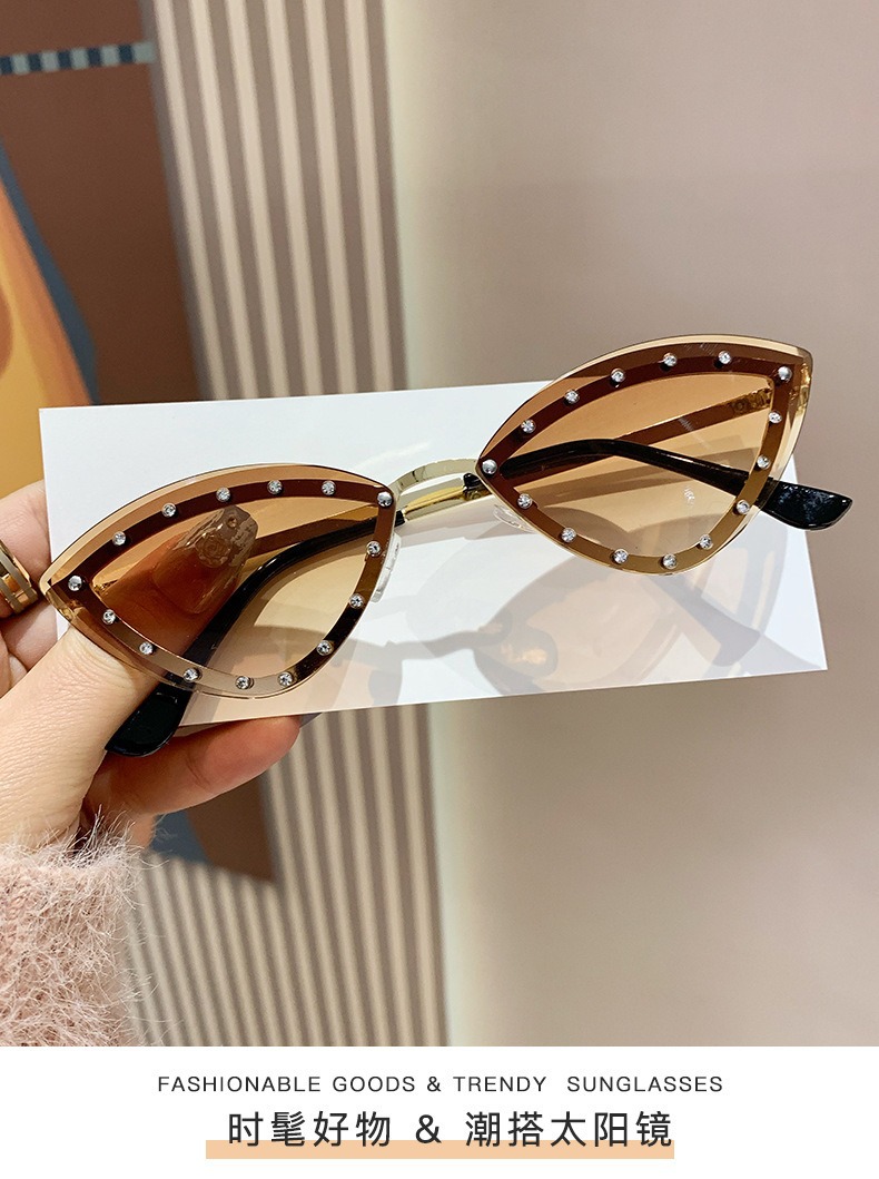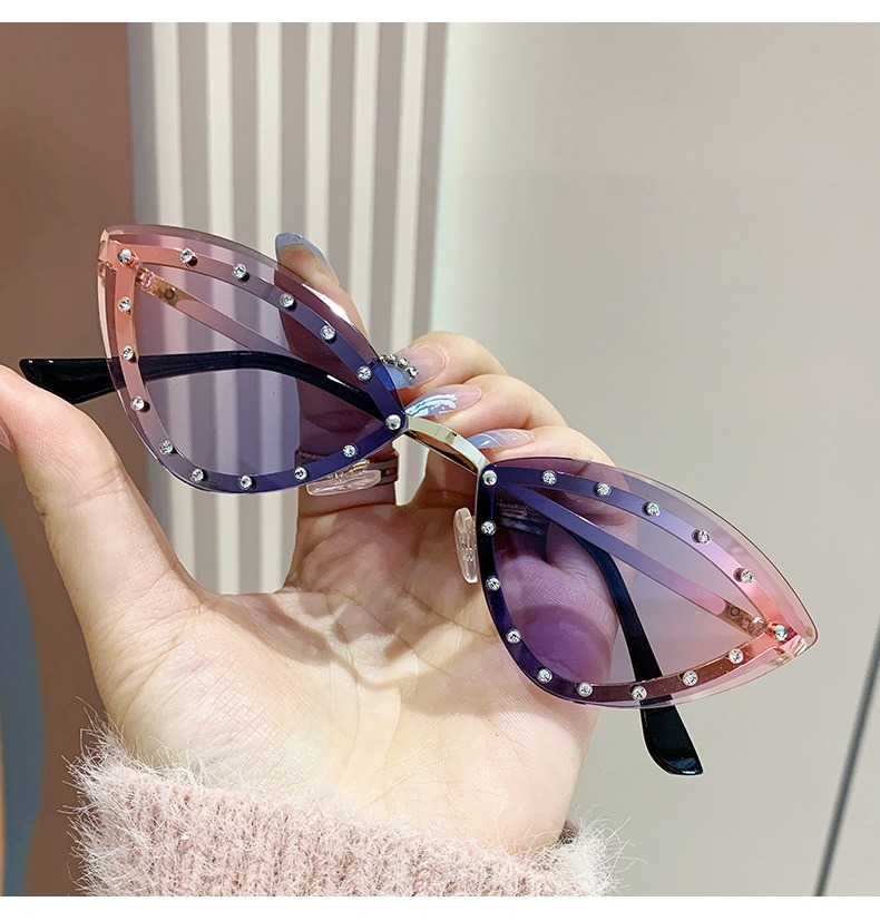 2025 국경 새로운 다채로운 다이아몬드로 장식 된 고양이의 눈 패션 선글라스 트렌디 한 인터넷 유명 거리 사진 촬영 개인화 된 장식 선글라스