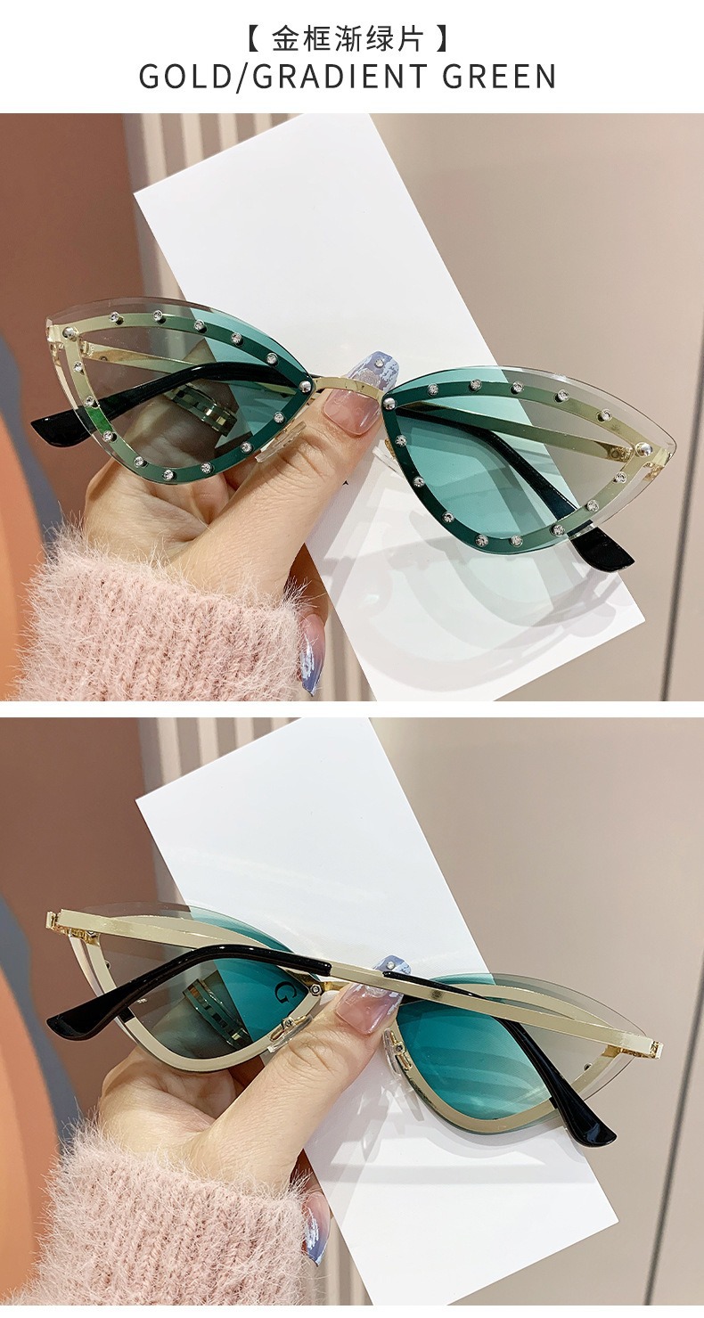 2025 국경 새로운 다채로운 다이아몬드로 장식 된 고양이의 눈 패션 선글라스 트렌디 한 인터넷 유명 거리 사진 촬영 개인화 된 장식 선글라스스토어 가기