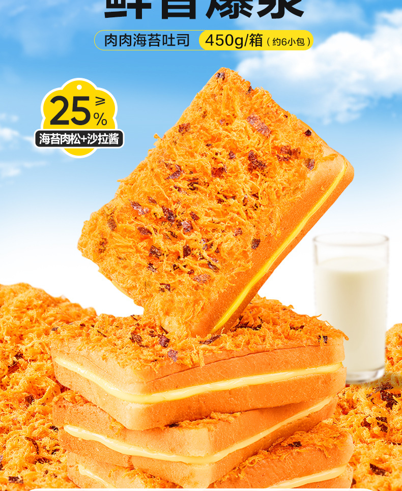 좋은 제품 가게 고기 치실 해초 토스트 빵 전체 상자 아침 식사 대체 식품 영양 스낵 스낵 케이크 450g스토어 가기