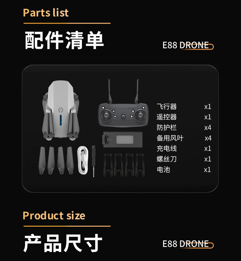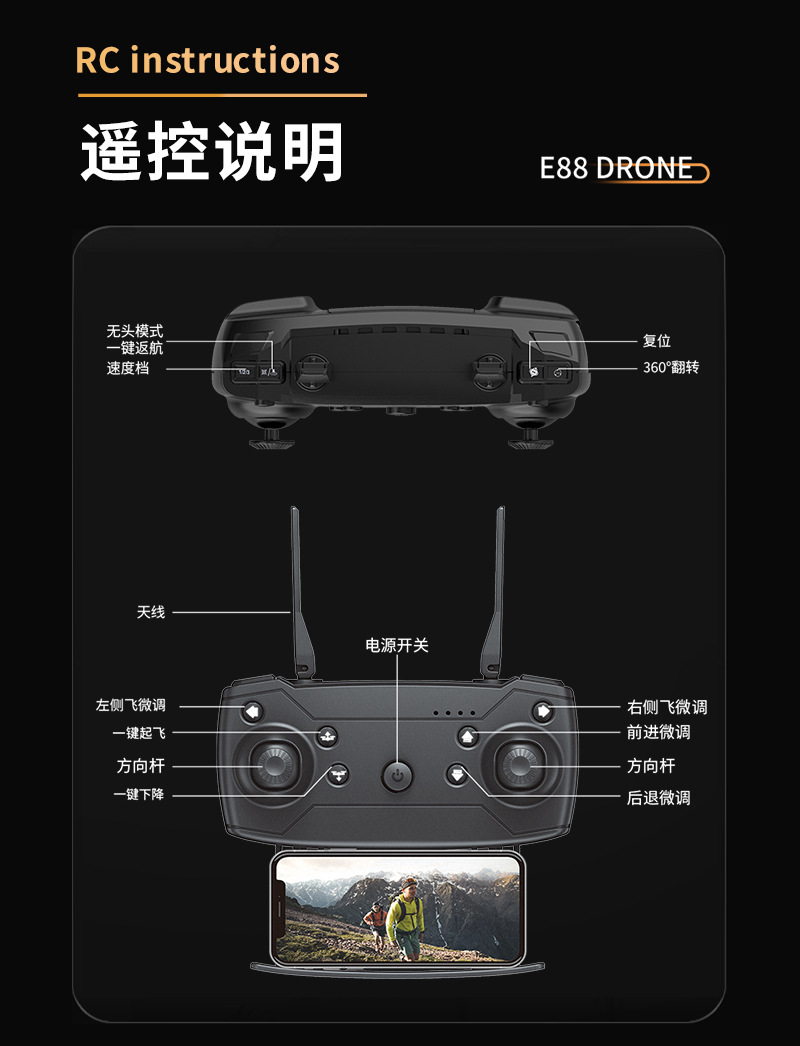 국경 간 E88/E99 화면 제어 접이식 4축 드론 광학 흐름 4축 항공기 항공 사진 원격 제어 항공기 대외 무역